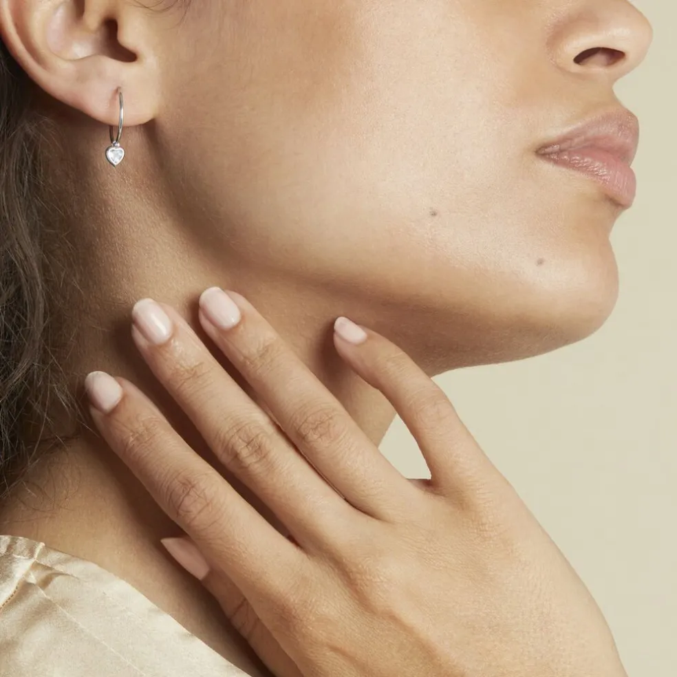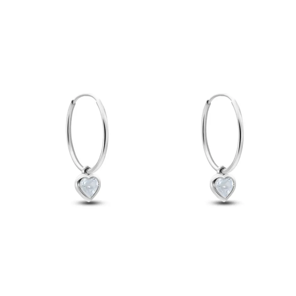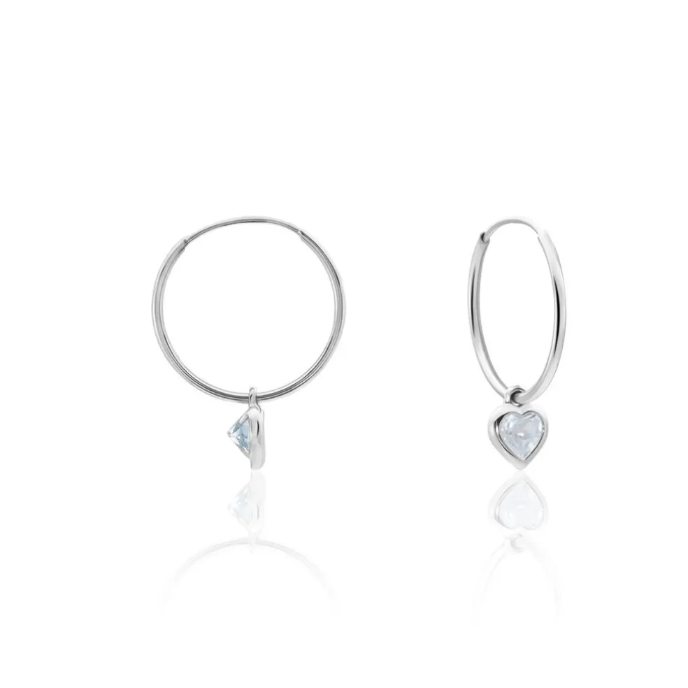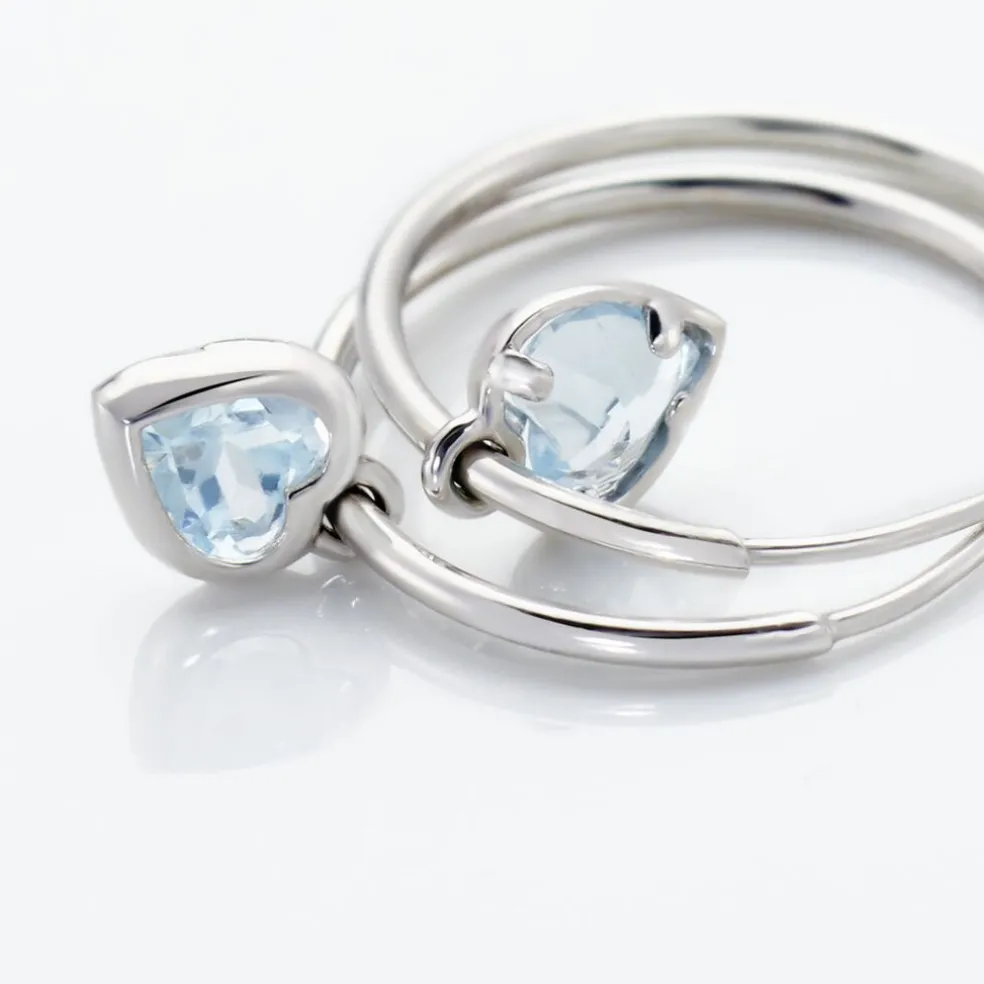 Créoles Or Blanc 375/1000 C艙ur Topaze Azur Serti Clos 15mm