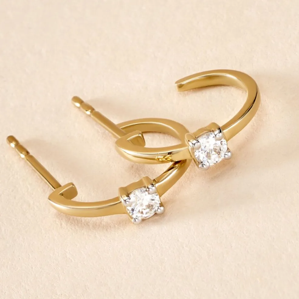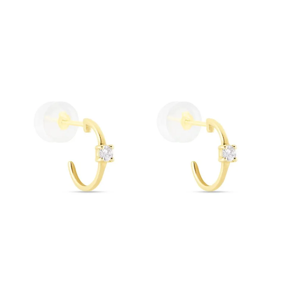 Créoles Or Jaune 375/1000 Oxyde De Zirconium Serti Griffes