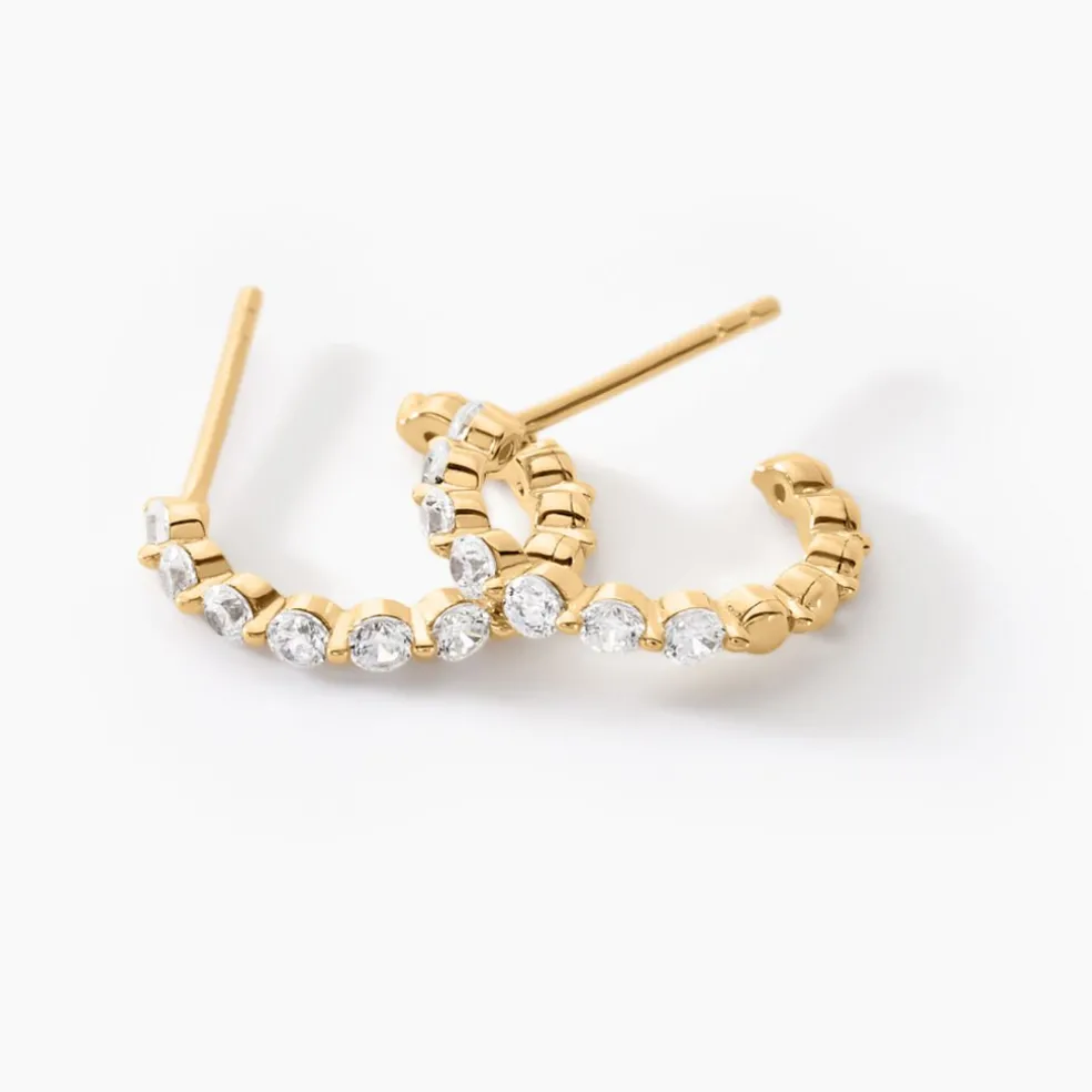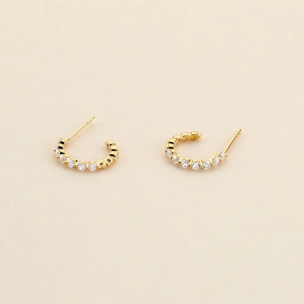 Créoles 3/4 Or Jaune 375/1000 Oxydes De Zirconium Serti Griffes 8.9mm
