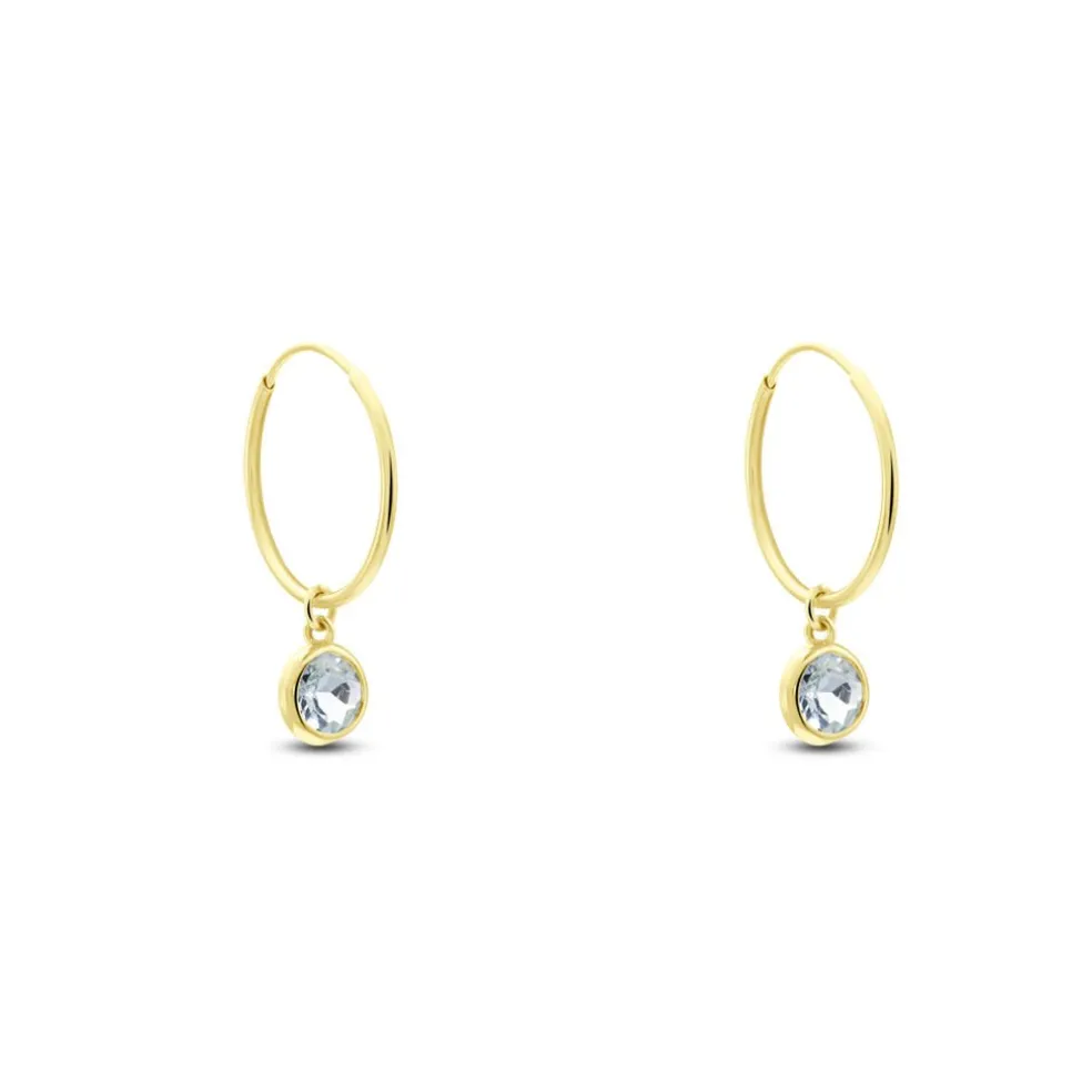 Créoles Or Jaune 375/1000 Topaze Azur Serti Clos 15mm