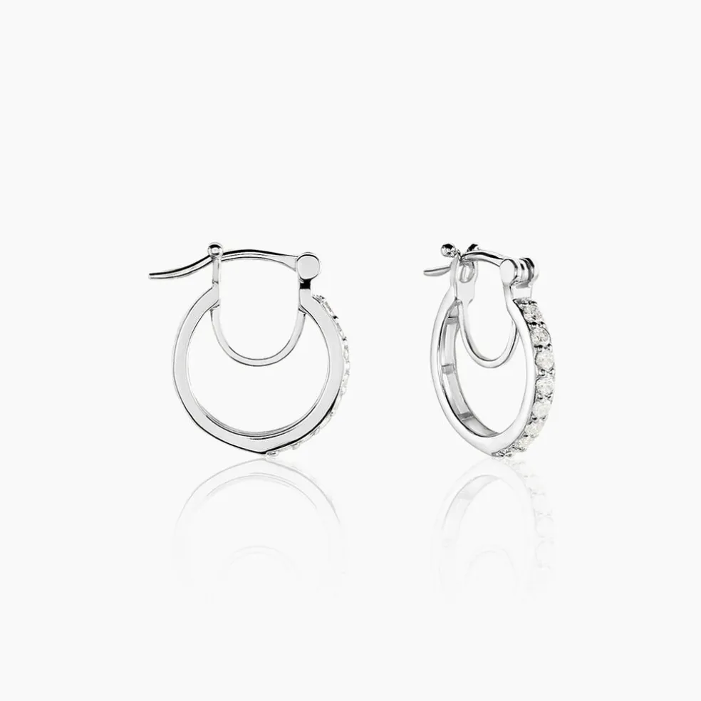 Créoles Argent Blanc 925/1000 Cercle Oxyde De Zirconium Serti Griffes 15mm