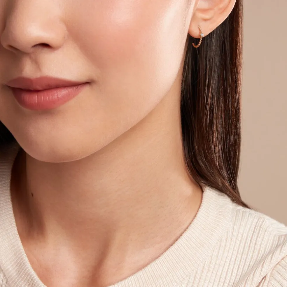 Creole Or Jaune 375/1000 Demi Cercle Effet Perle Avec 1 Pastille Pavage Diamants 0.01cts