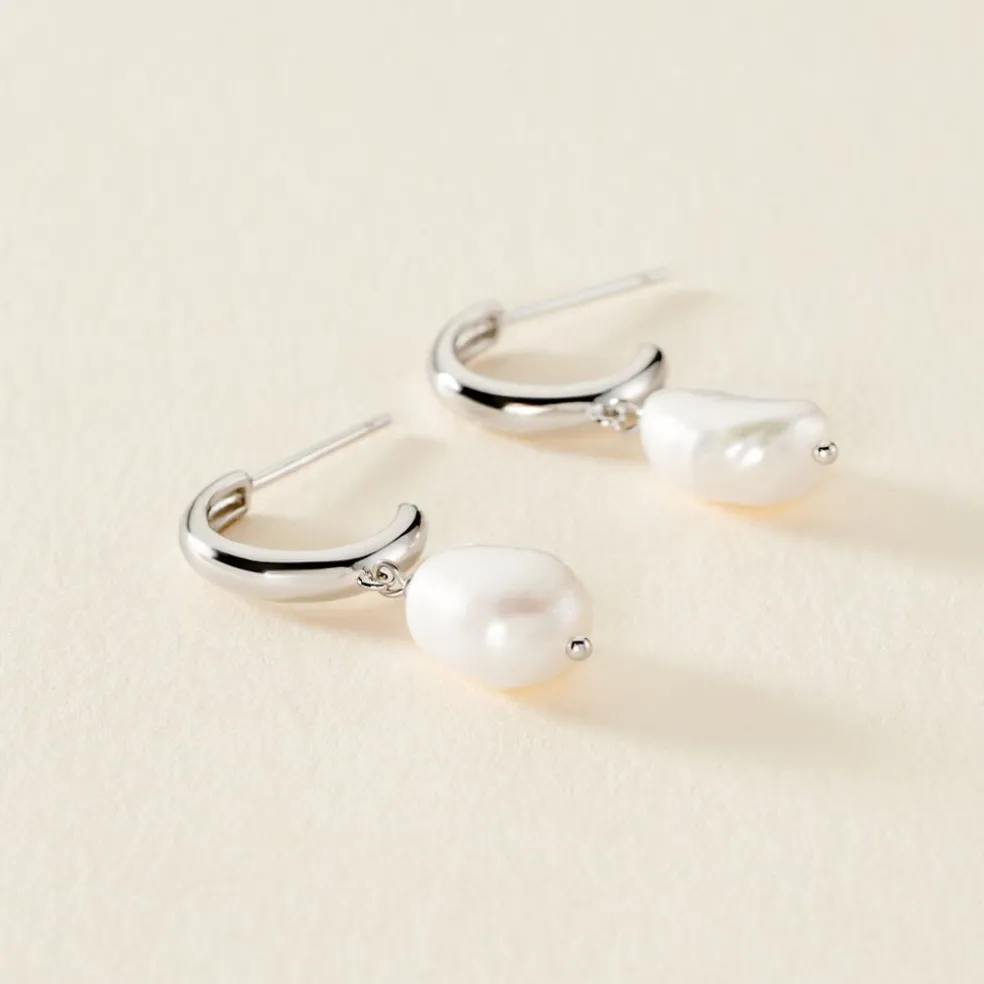 Créoles Argent 925/1000 Perle De Culture Pendante 10 Mm