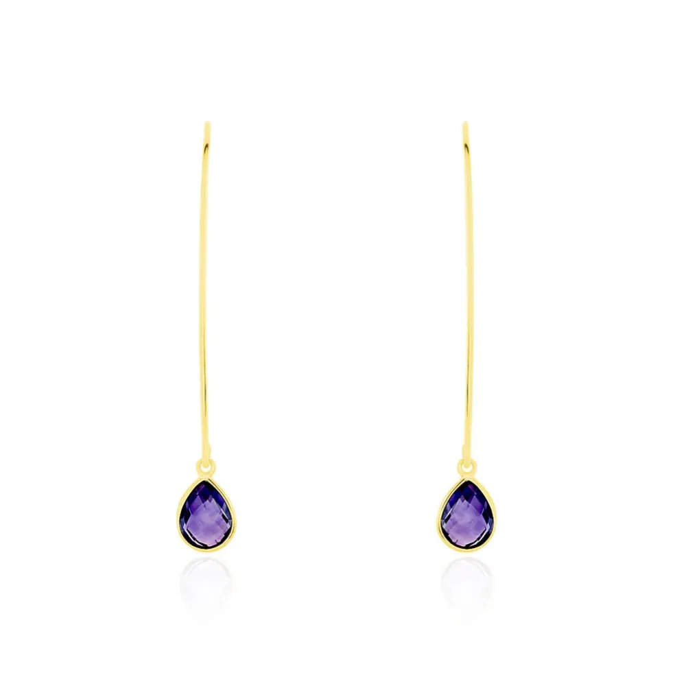 Creoles Or Jaune 375/1000 Formes Amandes Amethystes Poires