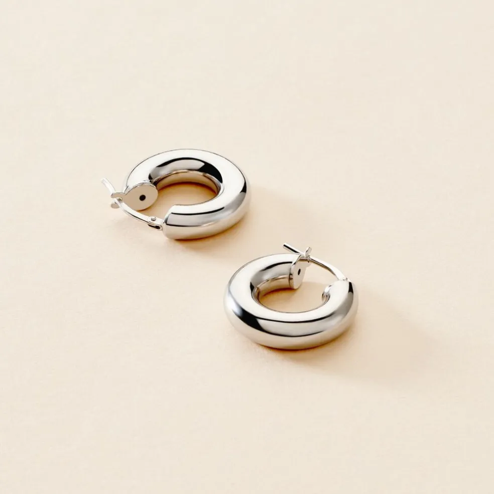 Créoles Argent Blanc 925/1000 Bombées Largeur 5mm Diamètre 8mm