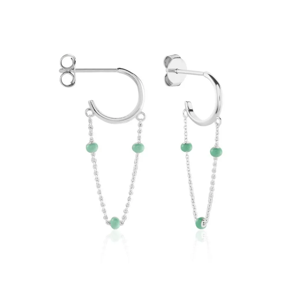 Créoles Argent Blanc 925/1000 Email Vert D’eau Maille Forçat 4.3cm Diamètre 8mm