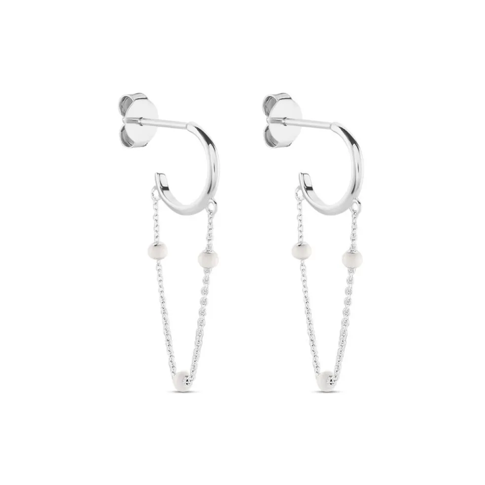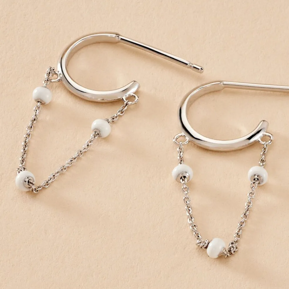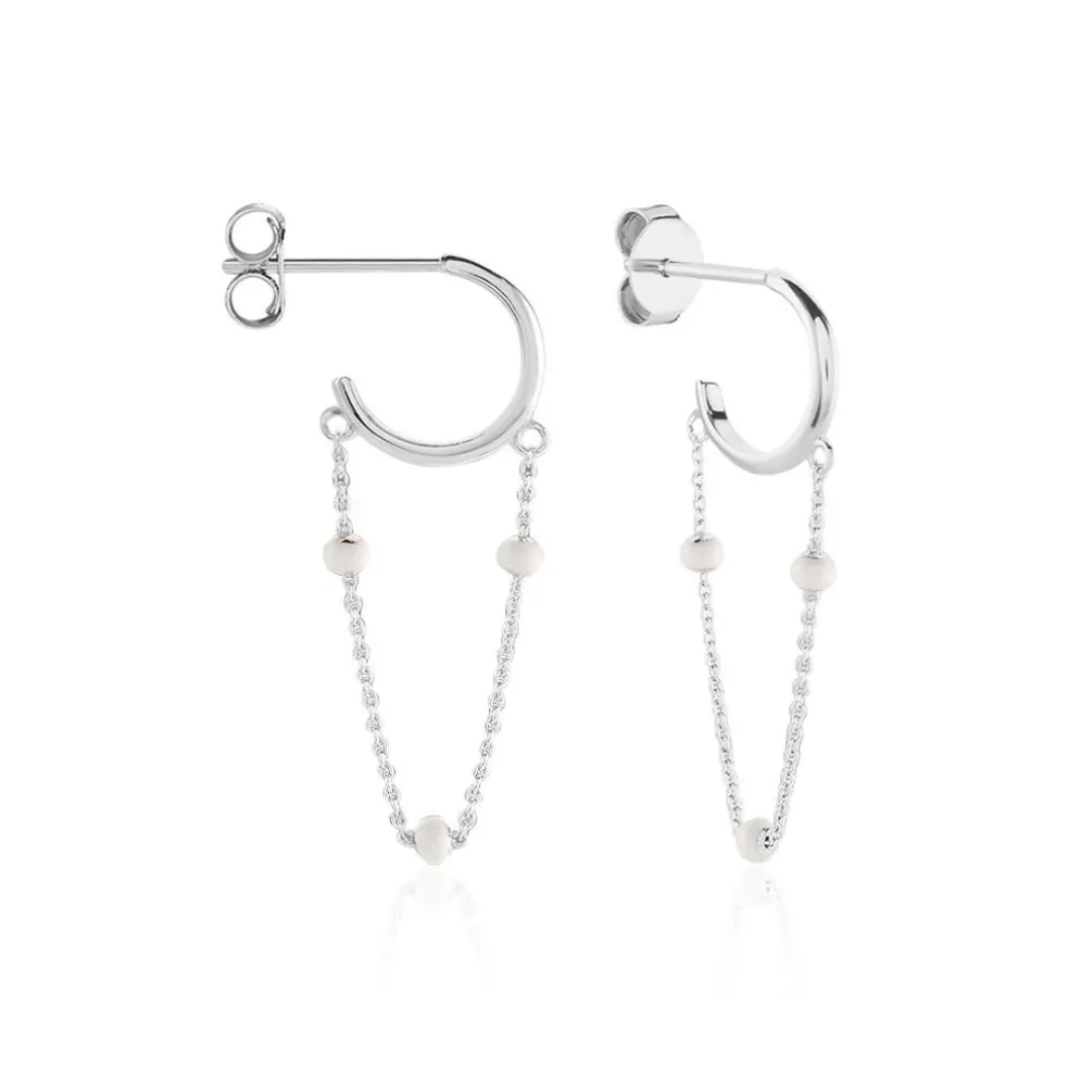 Créoles Argent Blanc 925/1000 Email Blanc Maille Forçat 4.3cm Diamètre 8mm