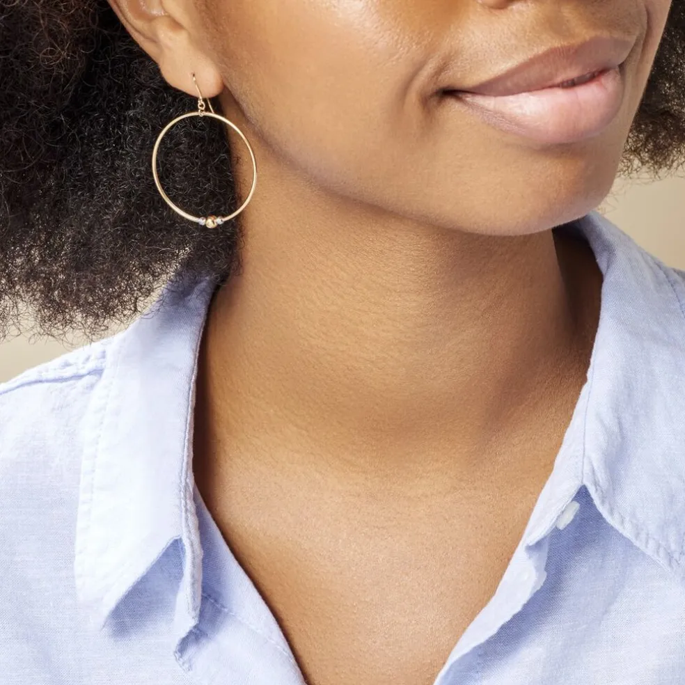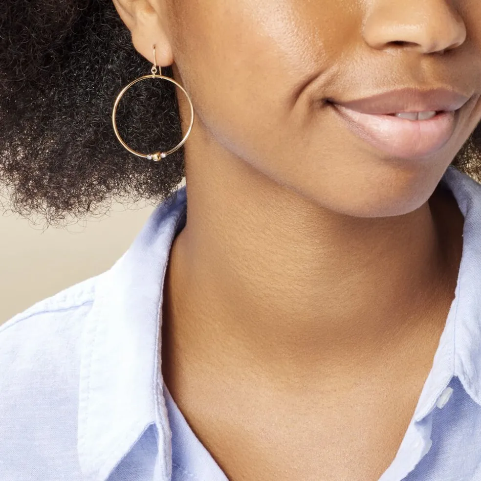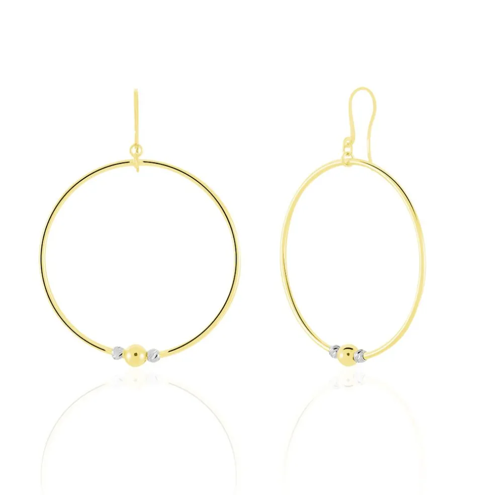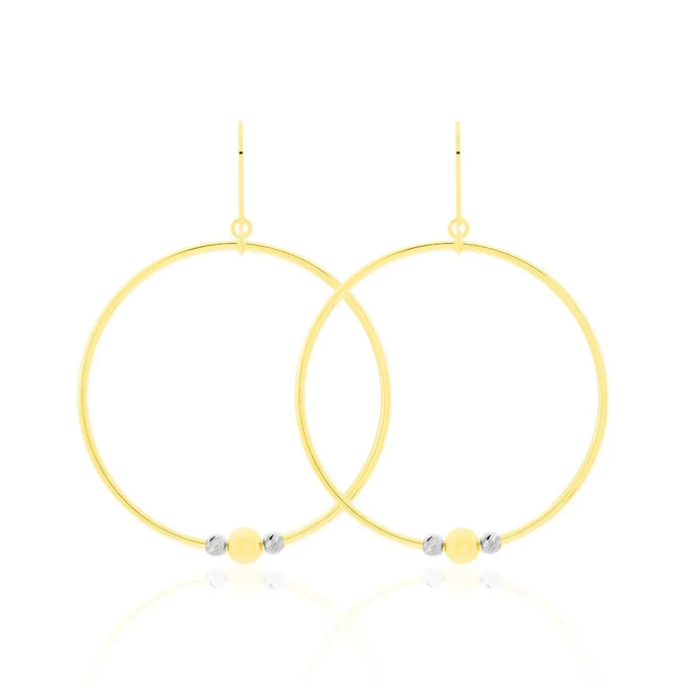 Creoles Or Jaune 375/1000 Cercle Et Billes Diamantees Bicolores Fil 1.2mm Diametre 35mm