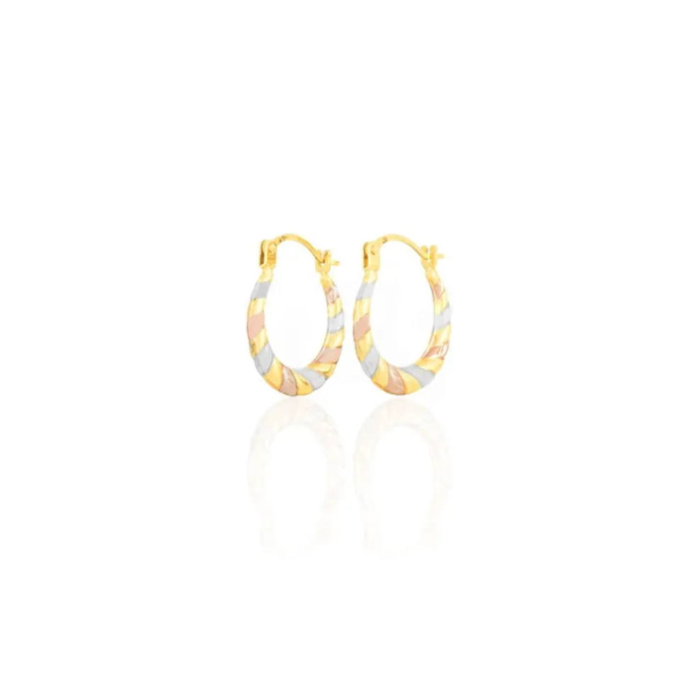 Créoles Or Tricolore 375/1000 Fil Bombe Largeur 2.2mm Diamètre 14mm