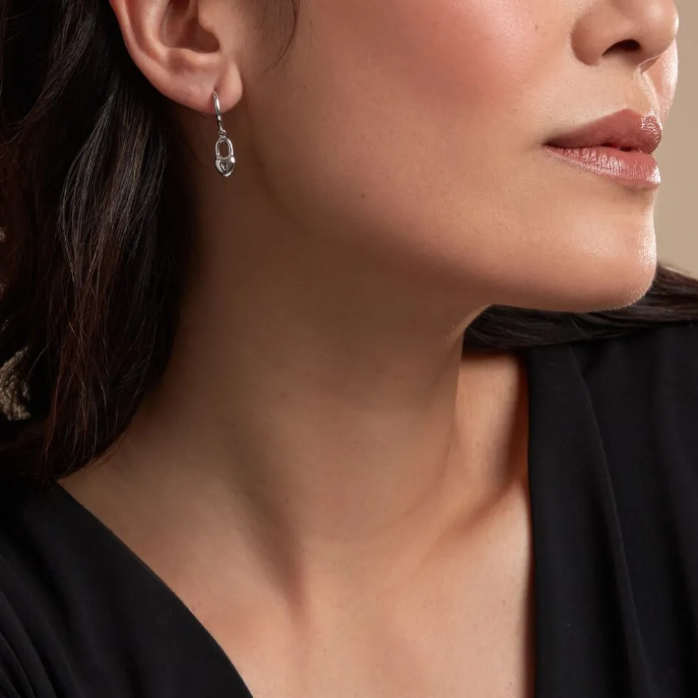 Creoles Argent Blanc 925/1000 Pampilles C艙urs Cadenas Diamère 11mm