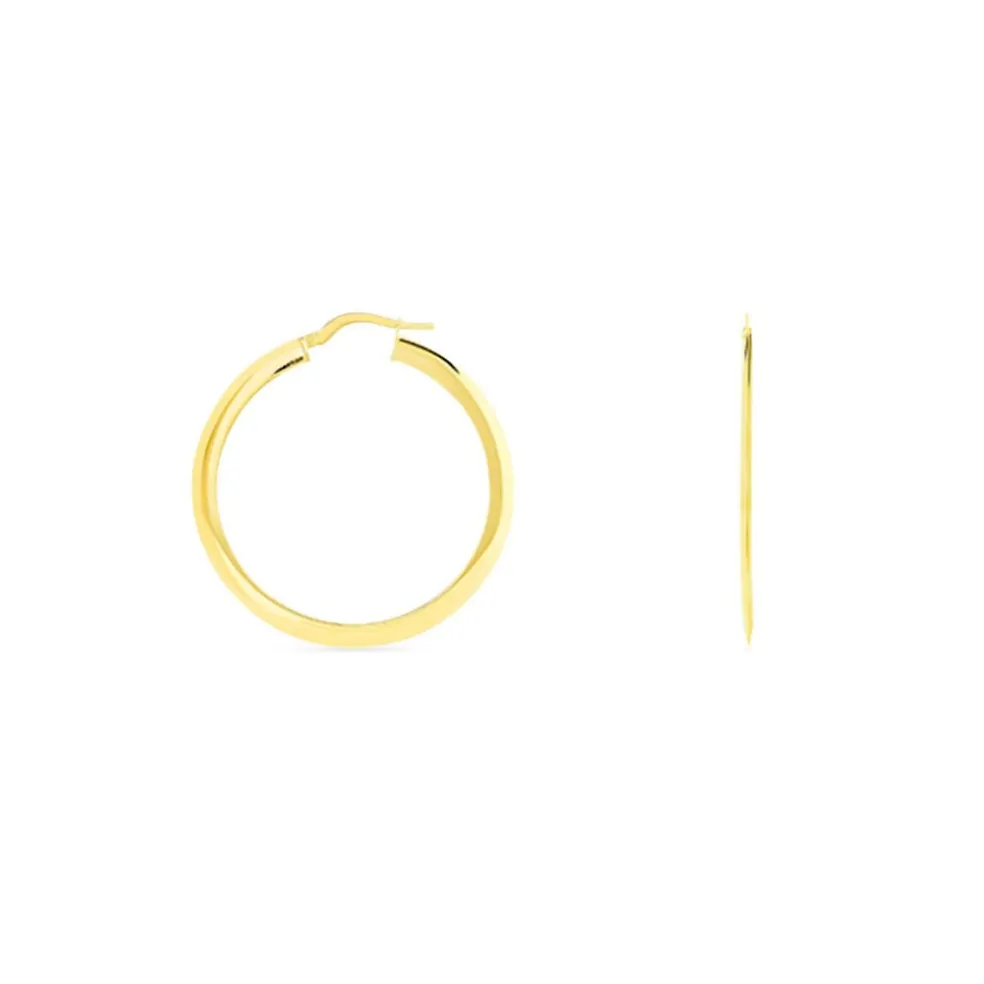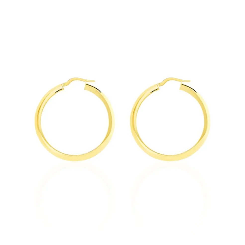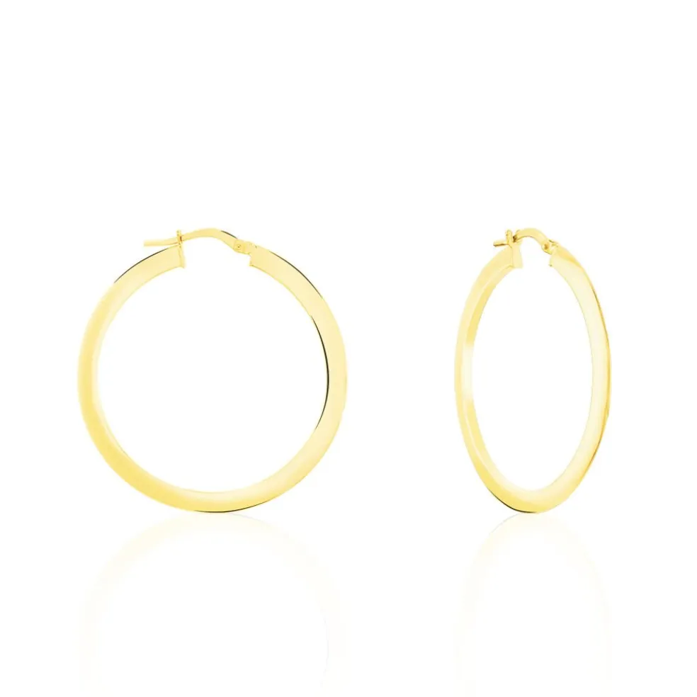 Créoles Or Jaune 375/1000 Fil Triangle Lisse Largeur 0.5mm Diamètre 30mm