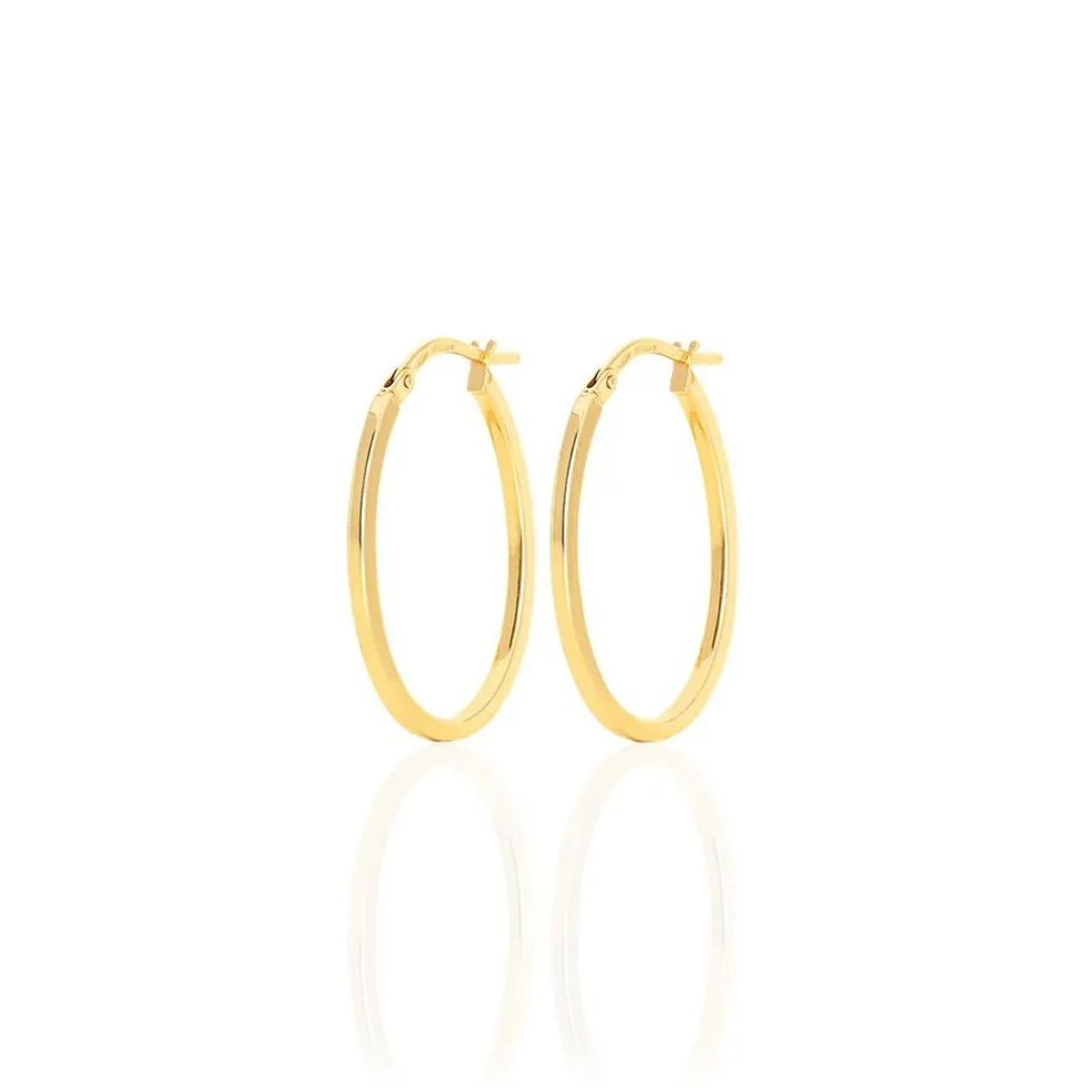 Créoles Or Jaune 375/1000 Ovales Fil Carré Lisse Largeur 1.5mm Diamètre 15x23mm