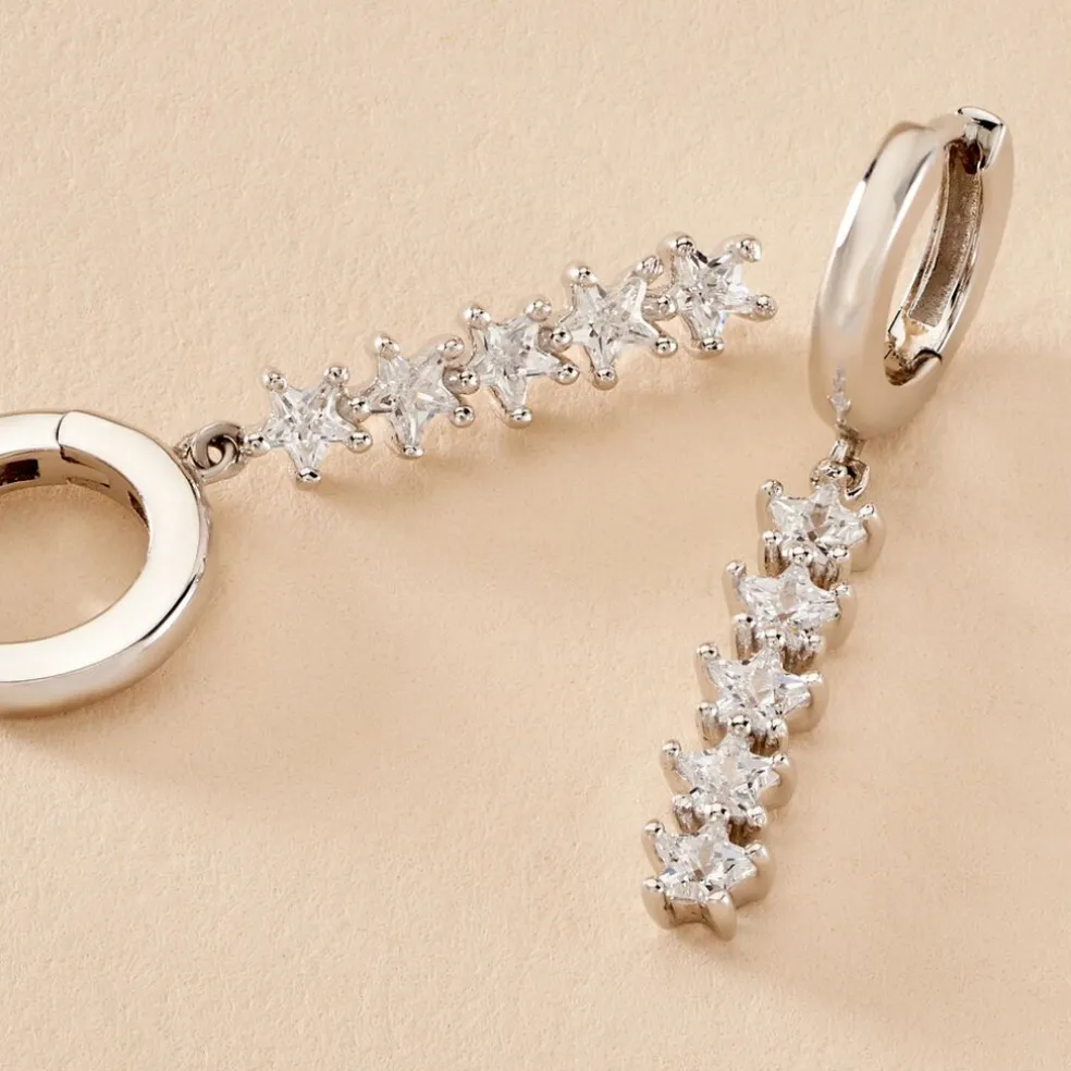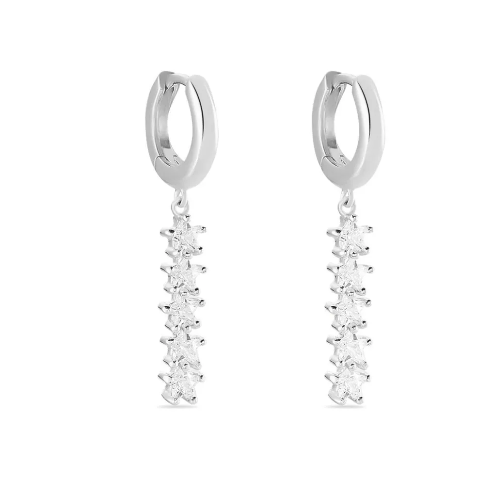 Créoles Argent 925/1000 Avec Pendants Etoiles Oxydes De Zirconium Diamètre 7mm