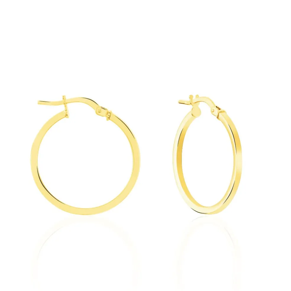 Créoles Or Jaune 375/1000 Fil Carré Lisse Largeur 1.5mm Diamètre 20mm