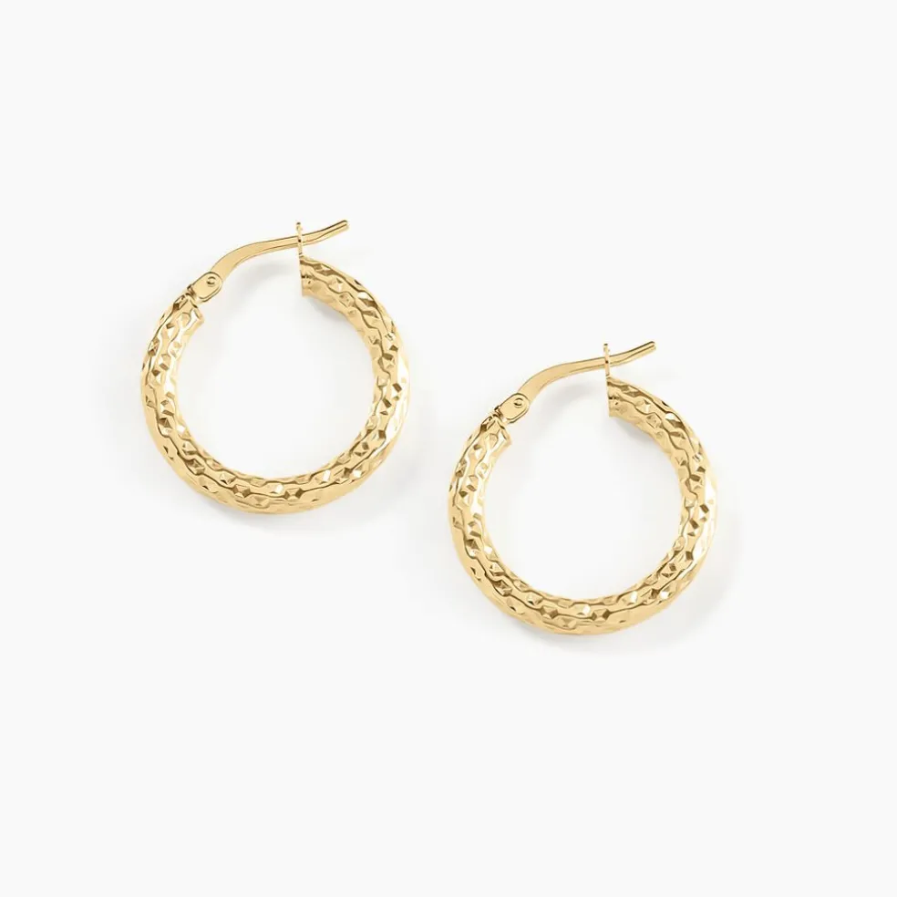 Créoles Or Jaune 375/1000 Fil Rond Martele Largeur 3mm Diamètre 15mm