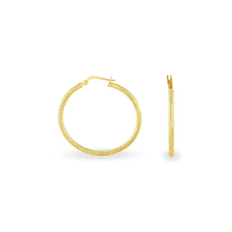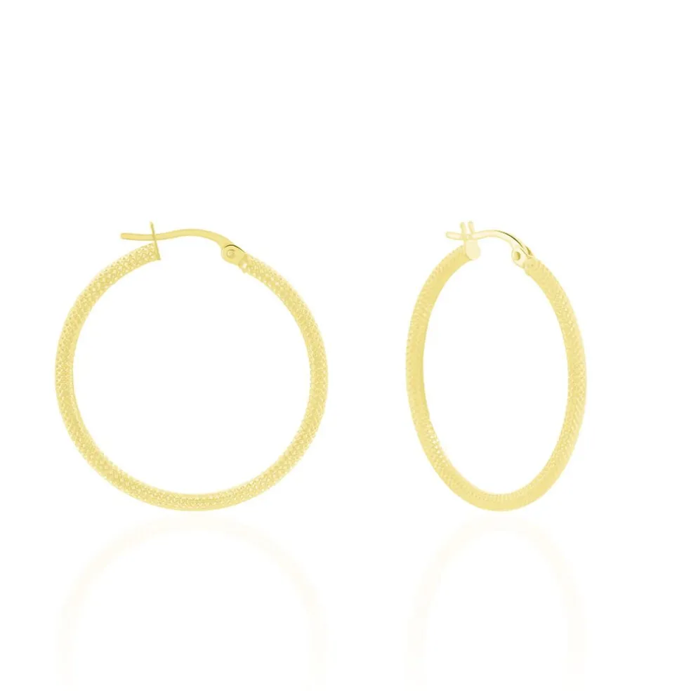 Créoles Or Jaune 375/1000 Fil Rond Piquete Largeur 2mm Diamètre 25mm