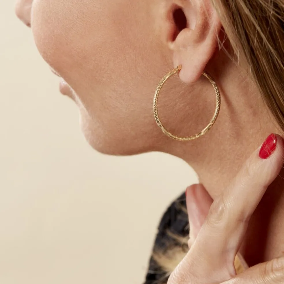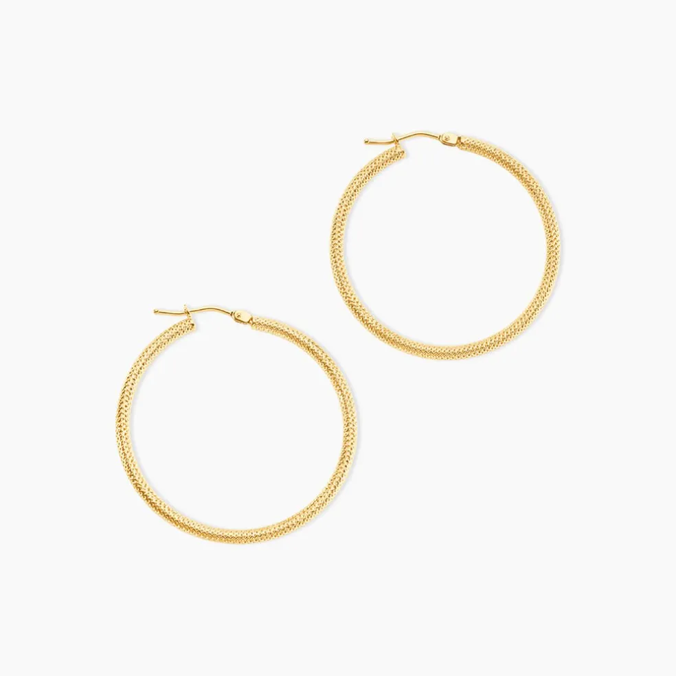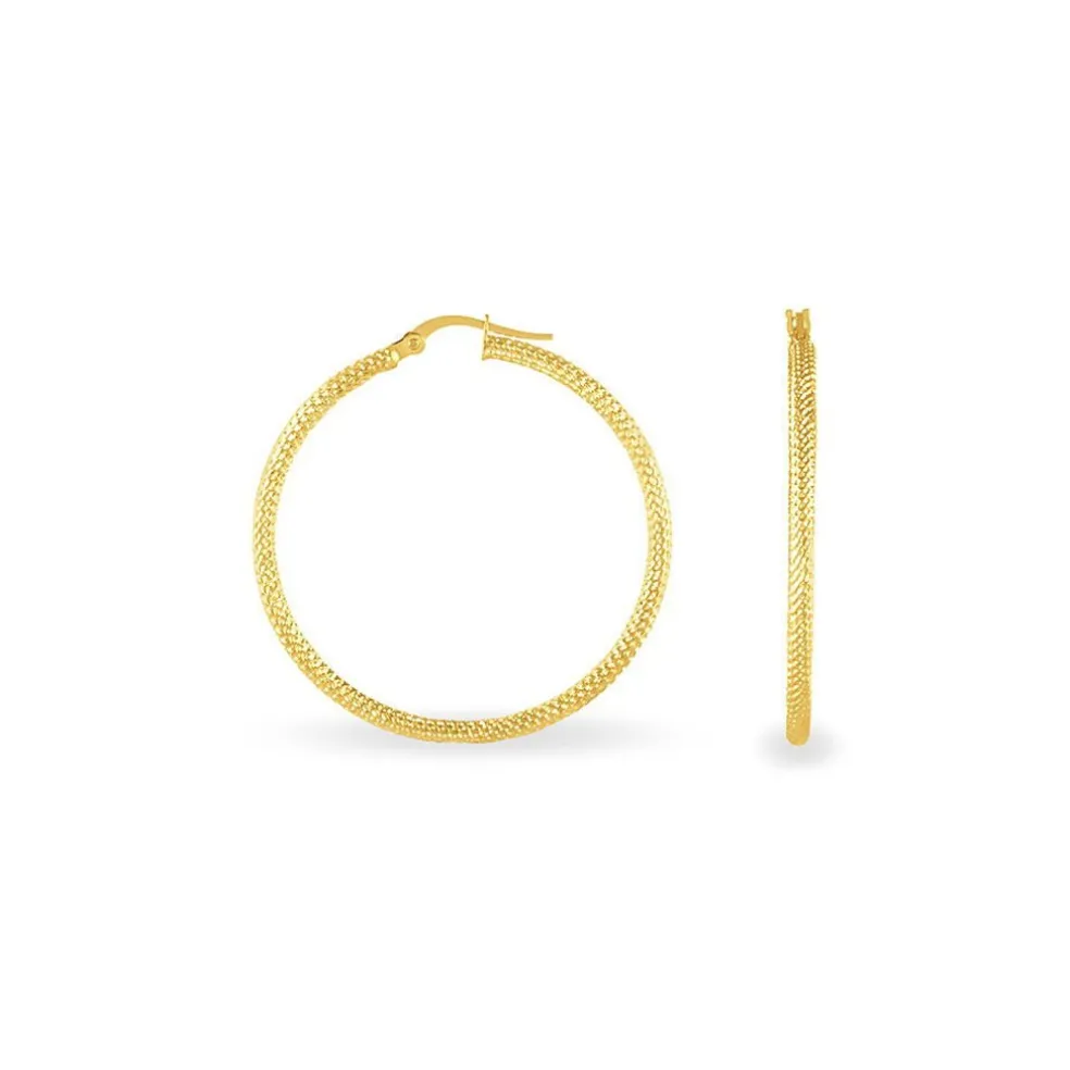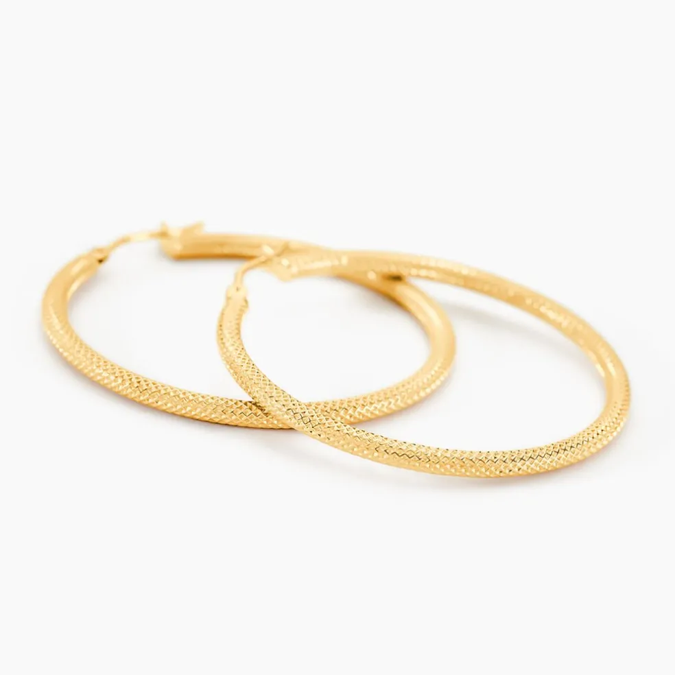 Créoles Or Jaune 375/1000 Fil Rond Piquete Largeur 2mm Diamètre 30mm