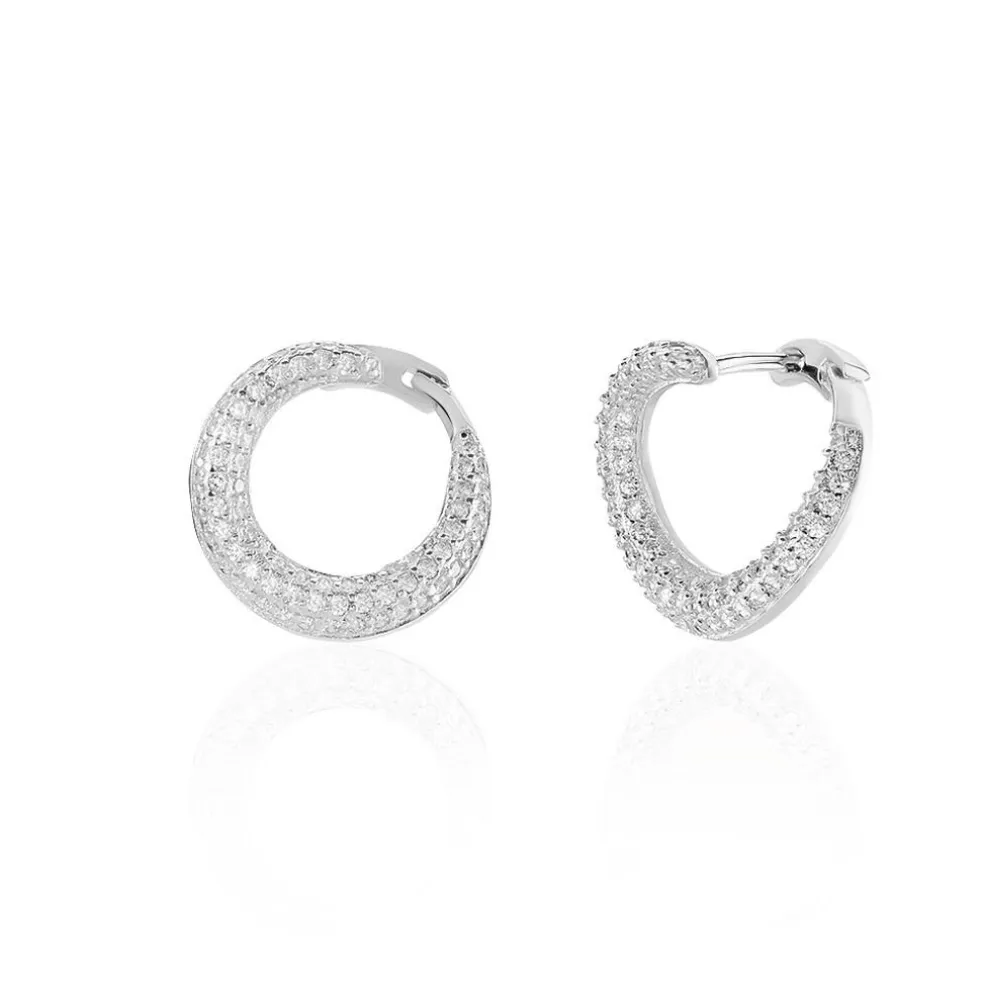 Créoles Argent 925/1000 Differenciante Pavage Oxydes De Zirconium Diamètre 17mm