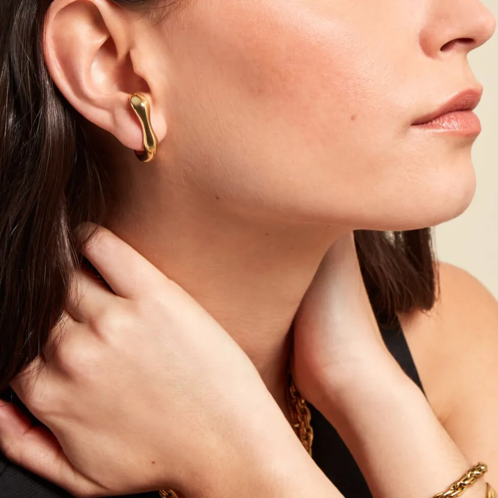 Demi Créoles D’oreilles Acier Inoxydable Jaune Incurvée Diamètre 30mm