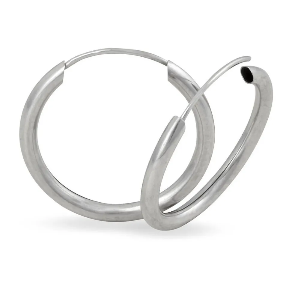 Créoles Or Blanc 375/1000 Fil Flexible Lisse Largeur 1.6mm Diamètre 15mm