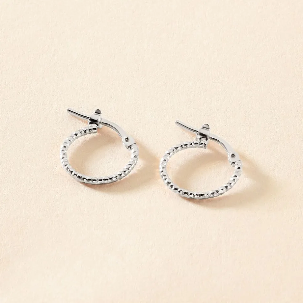 Créoles Argent Blanc 925/1000 Diamantées Largeur 1mm Diamètre 10mm