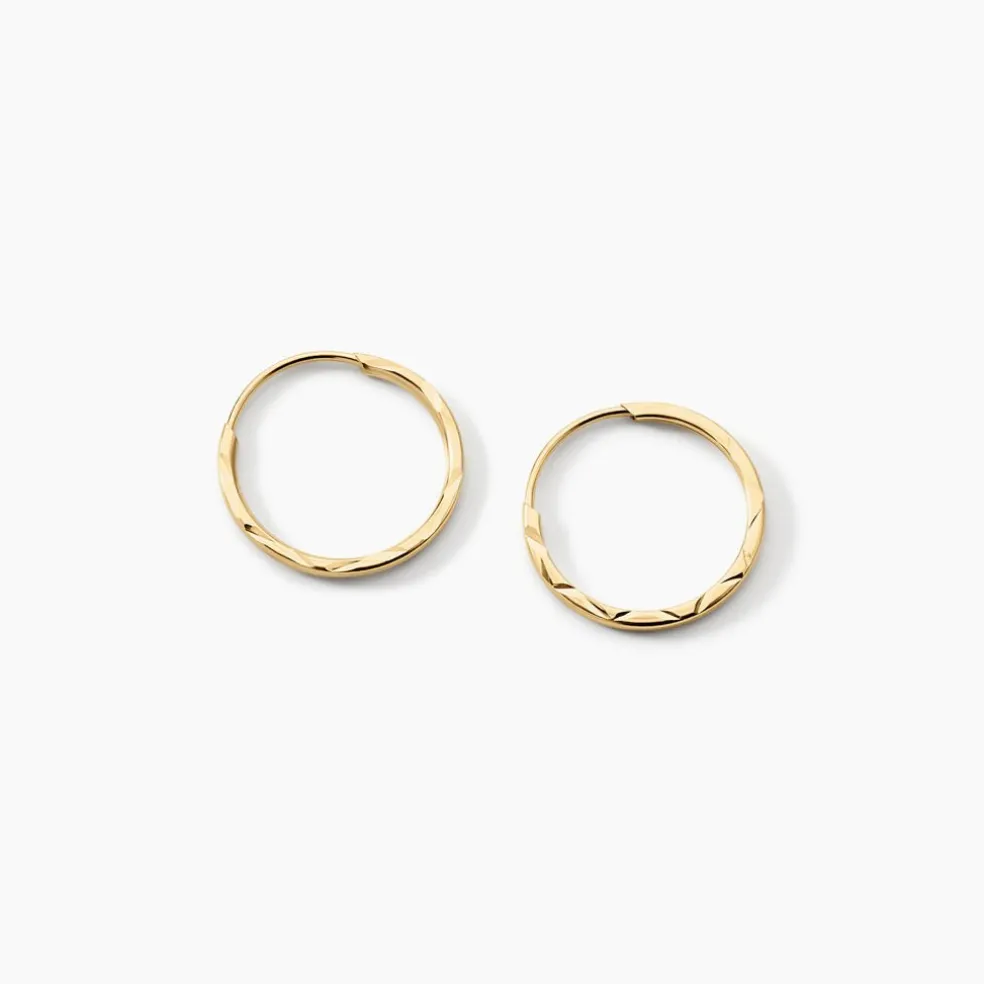 Creoles Or Jaune 750/1000 Fil Plat Ciselees Diametre Largeur 1mm 14mm
