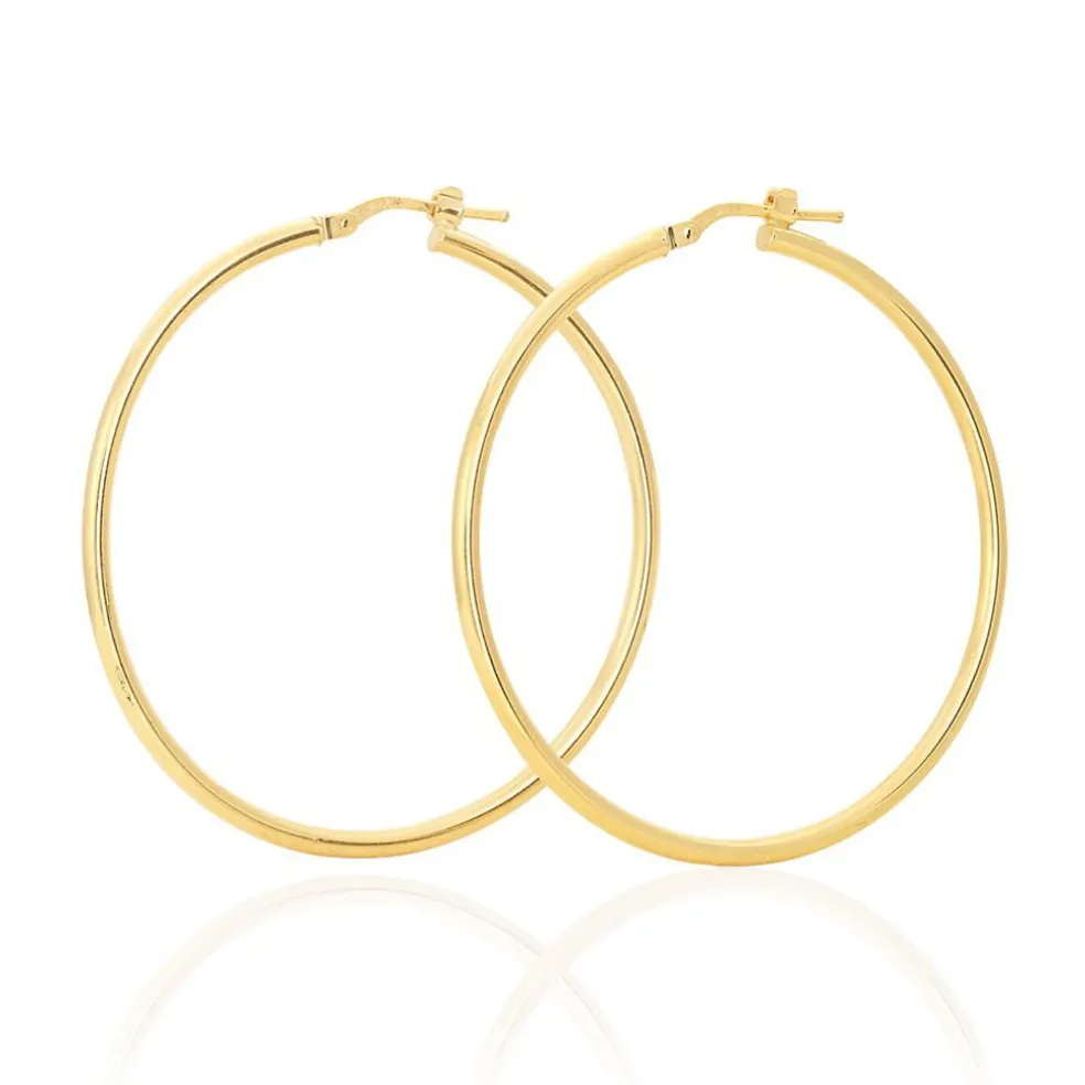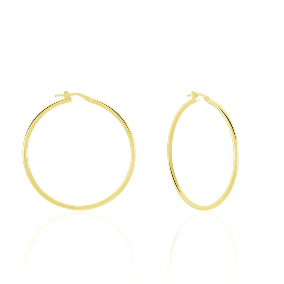 Créoles Or Jaune 375/1000 Fil Rond Lisse Largeur 2mm Diamètre 40mm