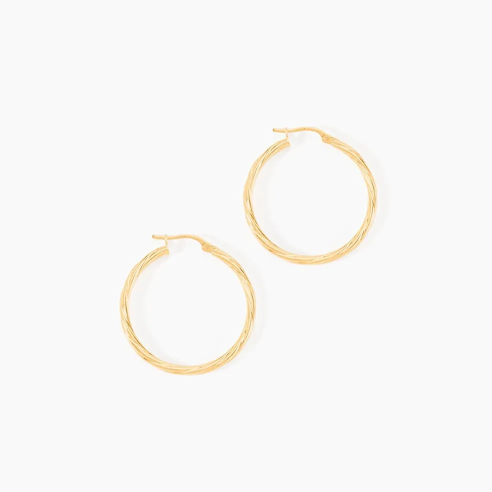 Créoles Or Jaune 375/1000 Fil Rond Torsadé Largeur 2mm Diamètre 25mm