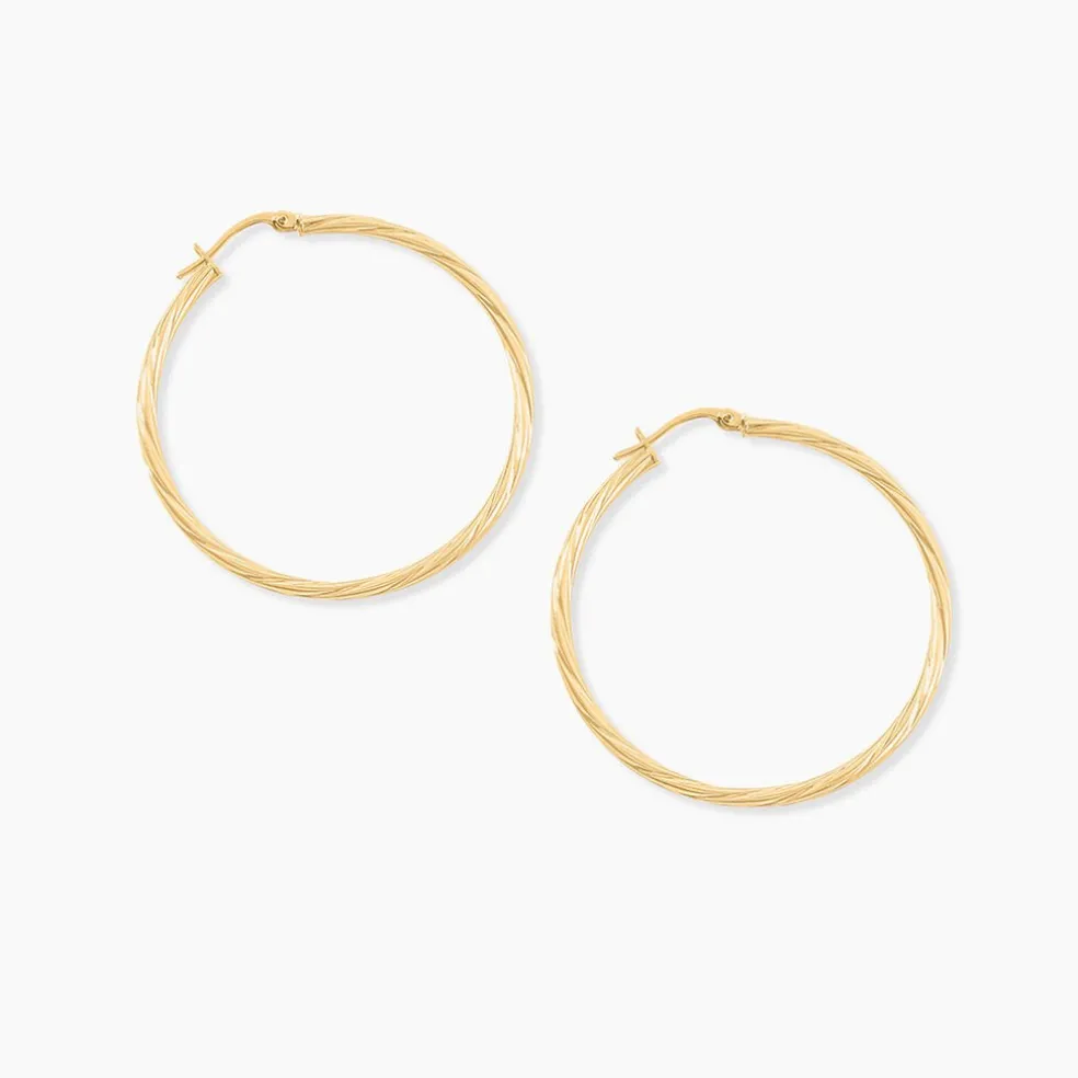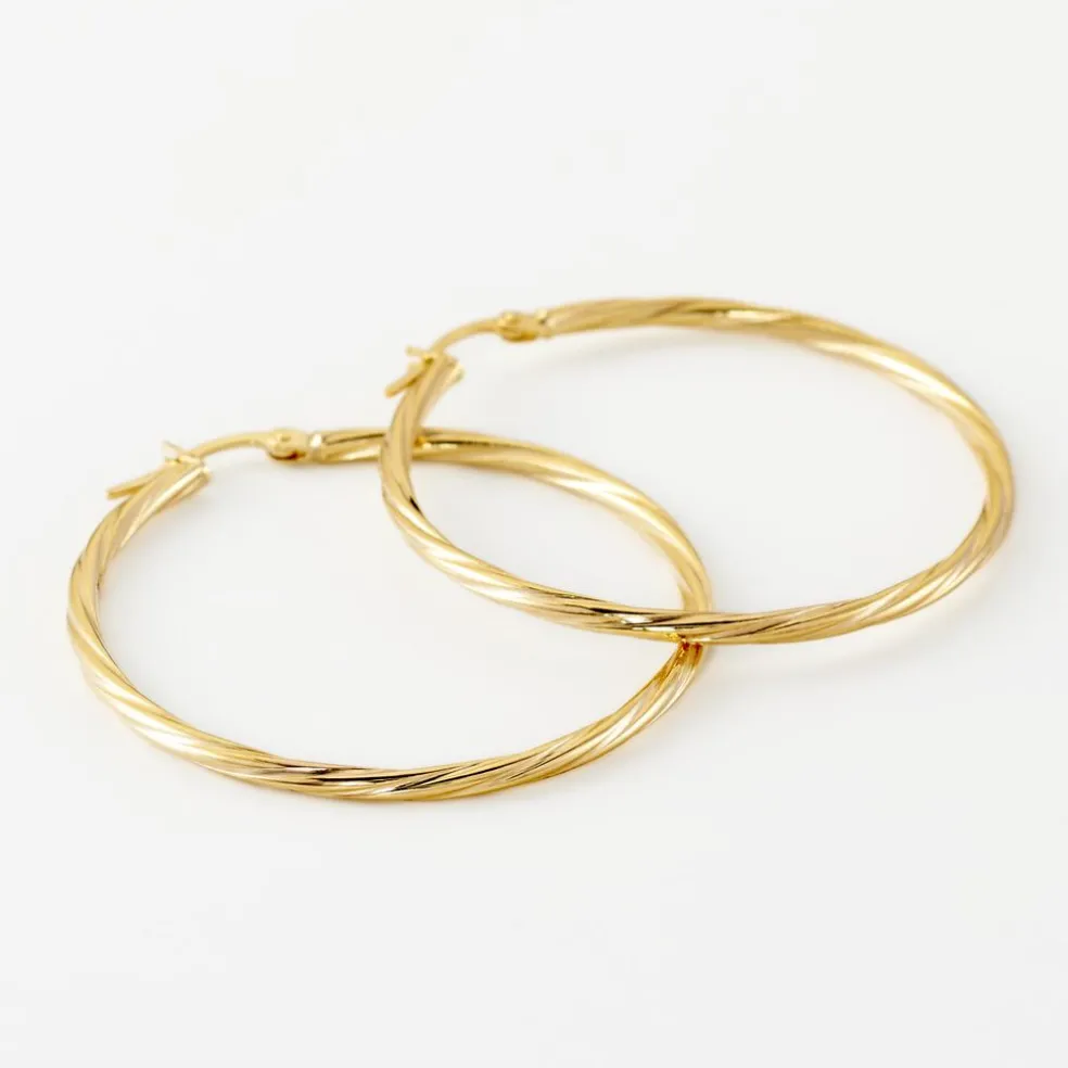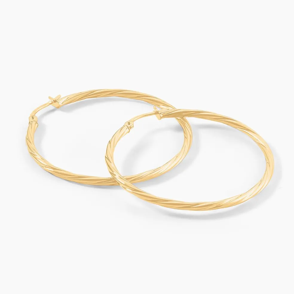 Créoles Or Jaune 375/1000 Fil Rond Torsadé Largeur 2mm Diamètre 35mm