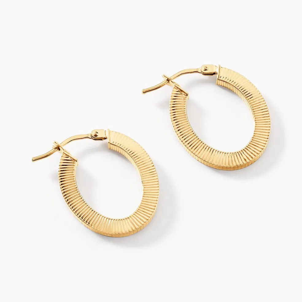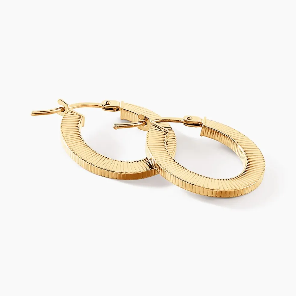 Créoles Or Jaune 375/1000 Ovale Fil Carre Strie Longueur 15mm Largeur 10mm