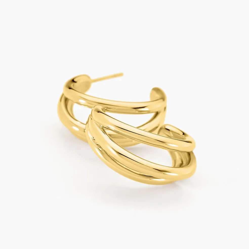 Demi Créoles Acier Inoxydable Jaune Triple Rang