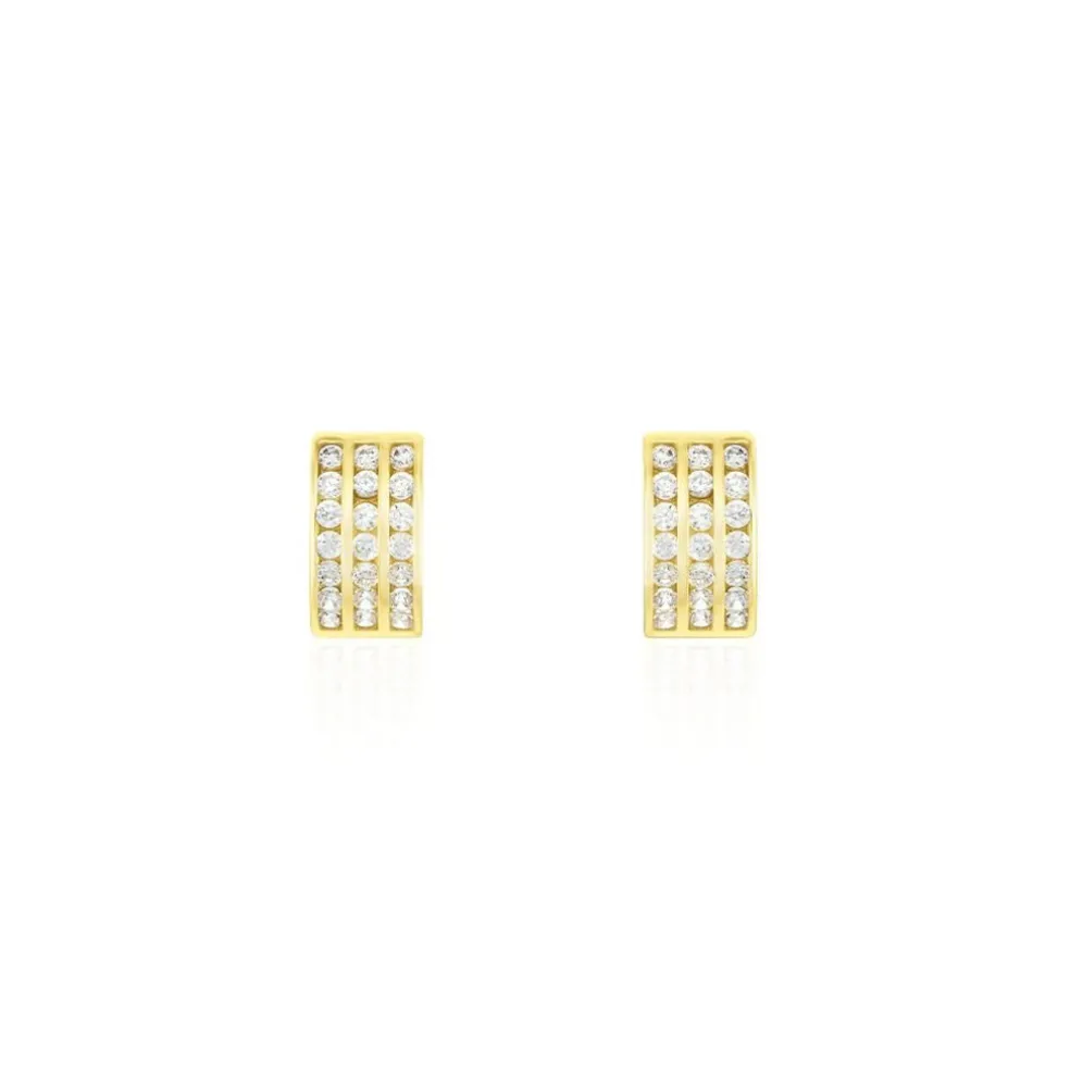 Demi Créoles Or Jaune 375/1000 Oxyde De Zirconium Serti Pavage