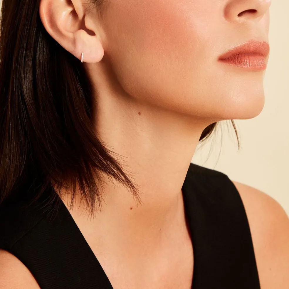 Mini Créoles Or Blanc 375/1000 Pavage Diamants Diametre 7mm