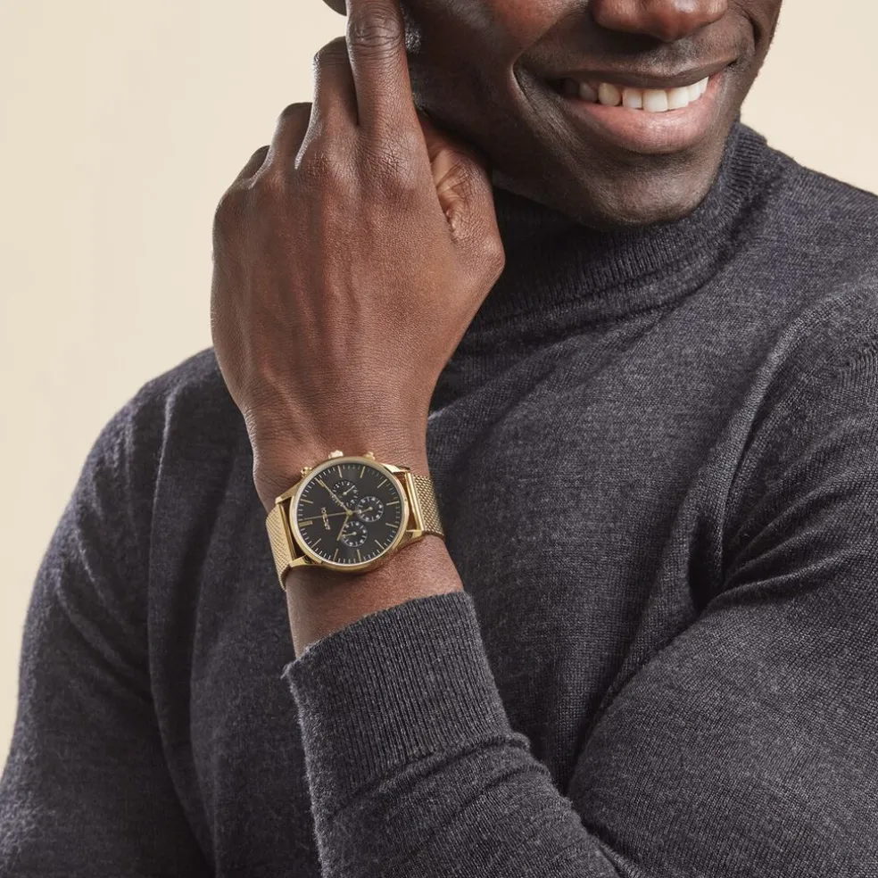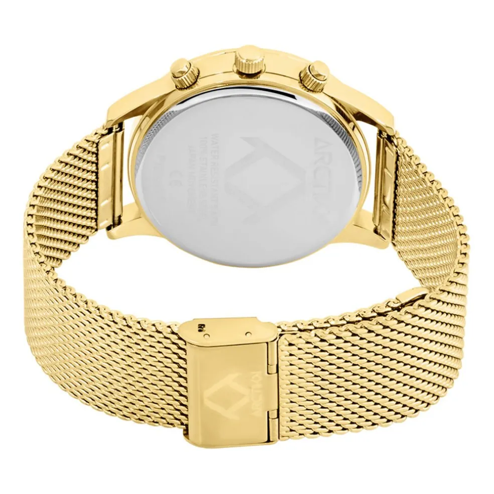 Montre Arctik Escale Acier Doré Ronde Quartz Chronographe 42mm Fond Noir Bracelet Milanais Acier Doré P100989-d