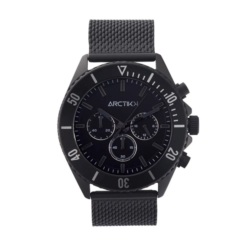 Montre Arctik Oxcal Acier Noir Ronde Quartz Chronographe 46mm Lunette Noire Fond Noir Bracelet Milanais Acier Noir Wba0409-003