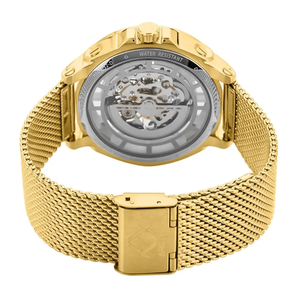 Montre Arctik Solstice Acier Doré Ronde Automatique 42.8mm Squelette Doré Bracelet Milanais Acier Doré P101032-d