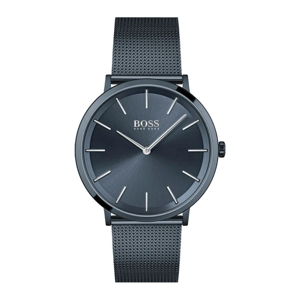 Montre Boss Skyliner Acier Bleu Ronde Quartz 40mm Fond Bleu Bracelet Acier Maille Milanaise Bleu 1513827