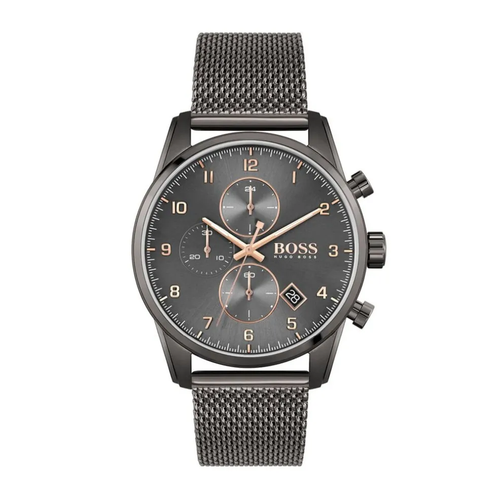 Montre Boss Skymaster Acier Gris Ronde Quartz Chronographe 44mm Fond Gris Bracelet Acier Gris 1513837