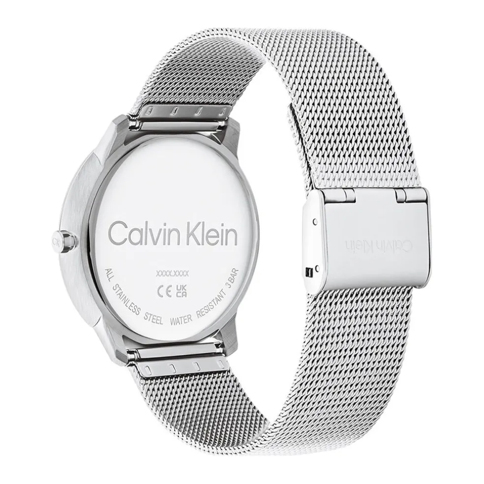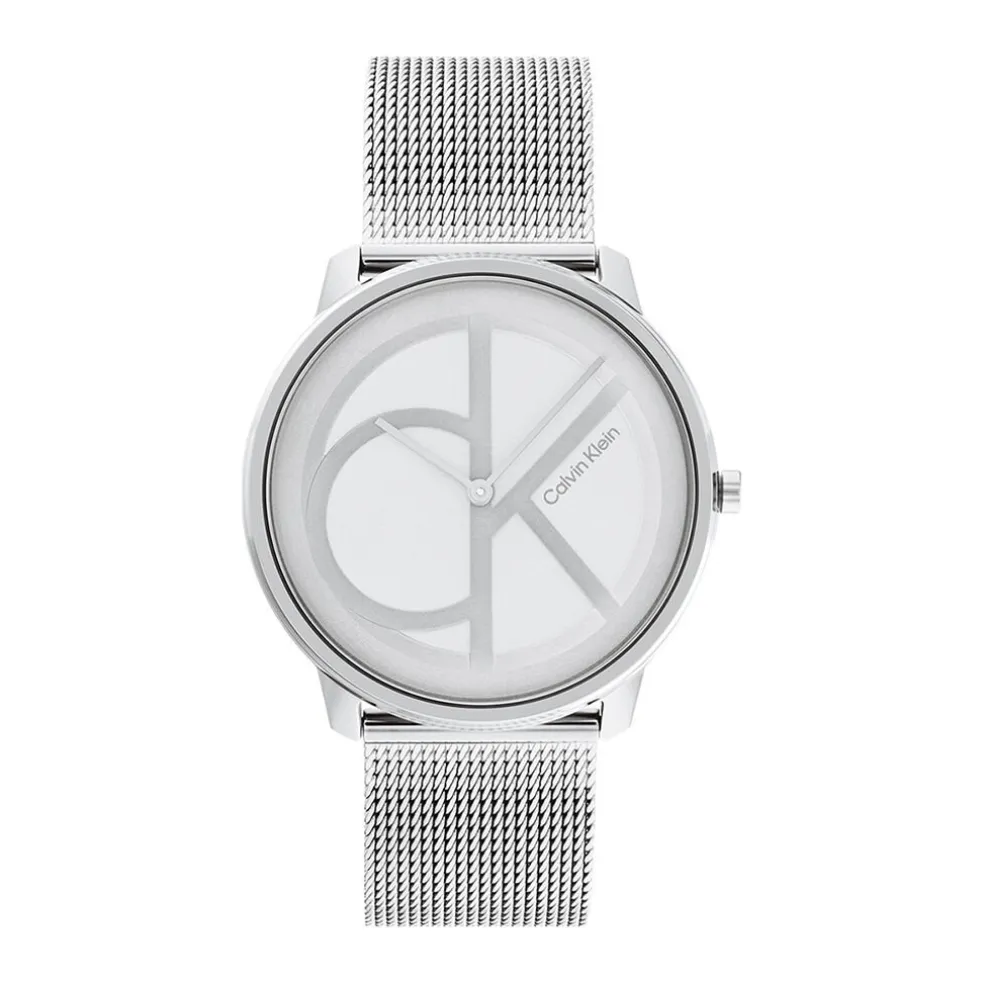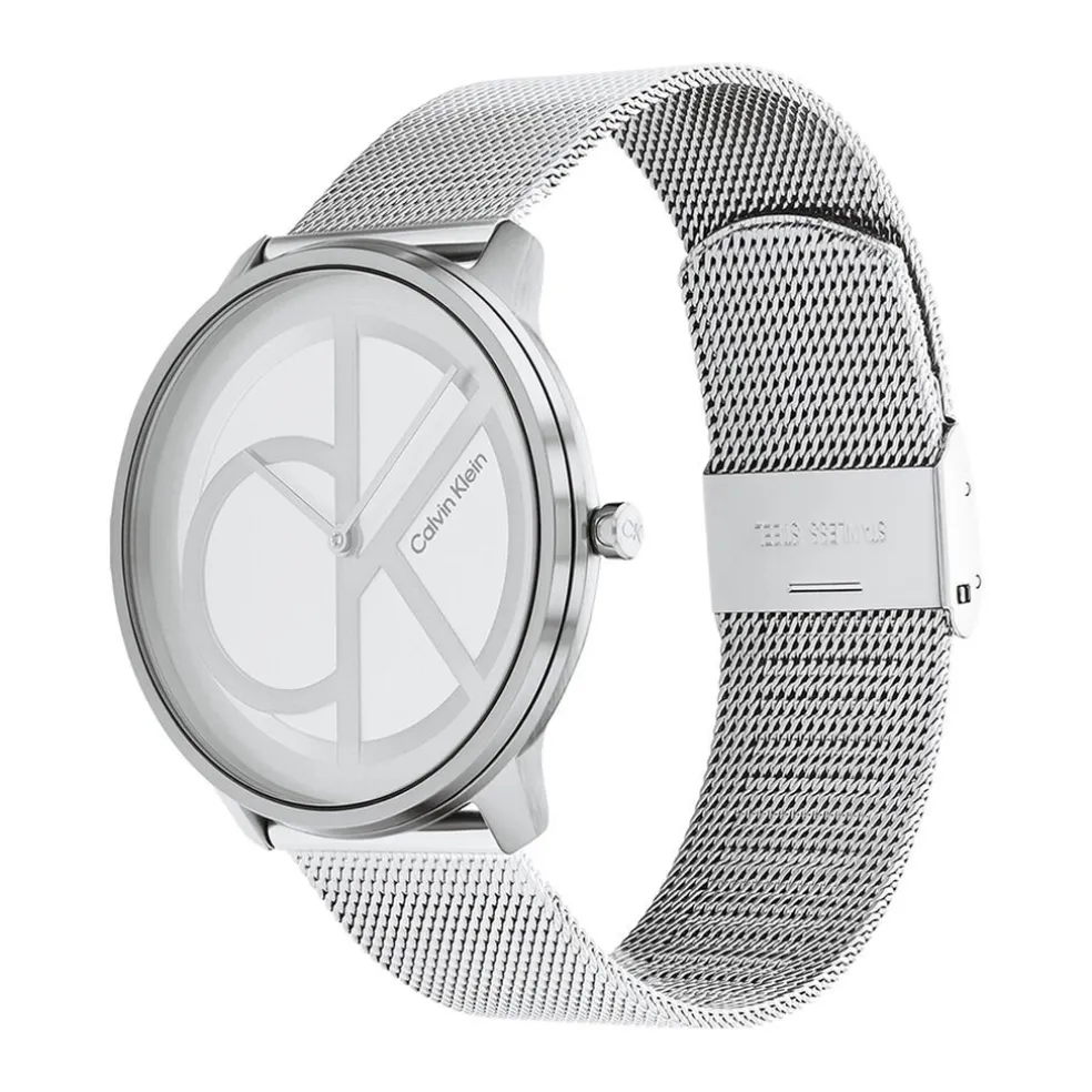 Montre Calvin Klein Iconic Mesh Acier Blanc Ronde Quartz 40mm Fond Argent Bracelet Maille Milanaise Acier Argenté 25200027
