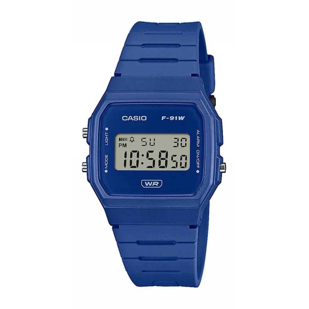 Montre Casio Collection Vintage Digitale Resine Bleu Rectangulaire Quartz 35.20mm Fond Bleu Bracelet Resine Bleu F-91wb-2a1ef