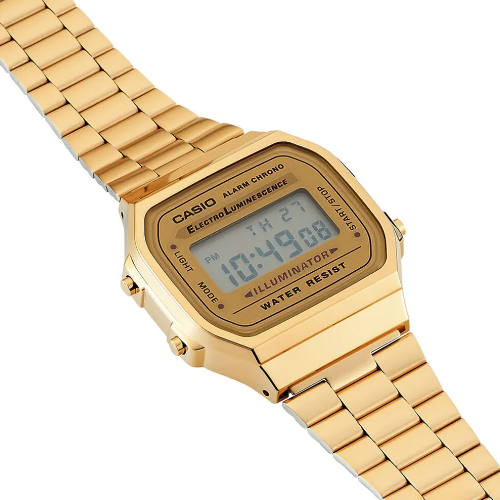 Montre Casio Collection Vintage Acier Dore Carrée Quartz 38mm Fond Champagne Bracelet Acier Dore A168wg-9ef
