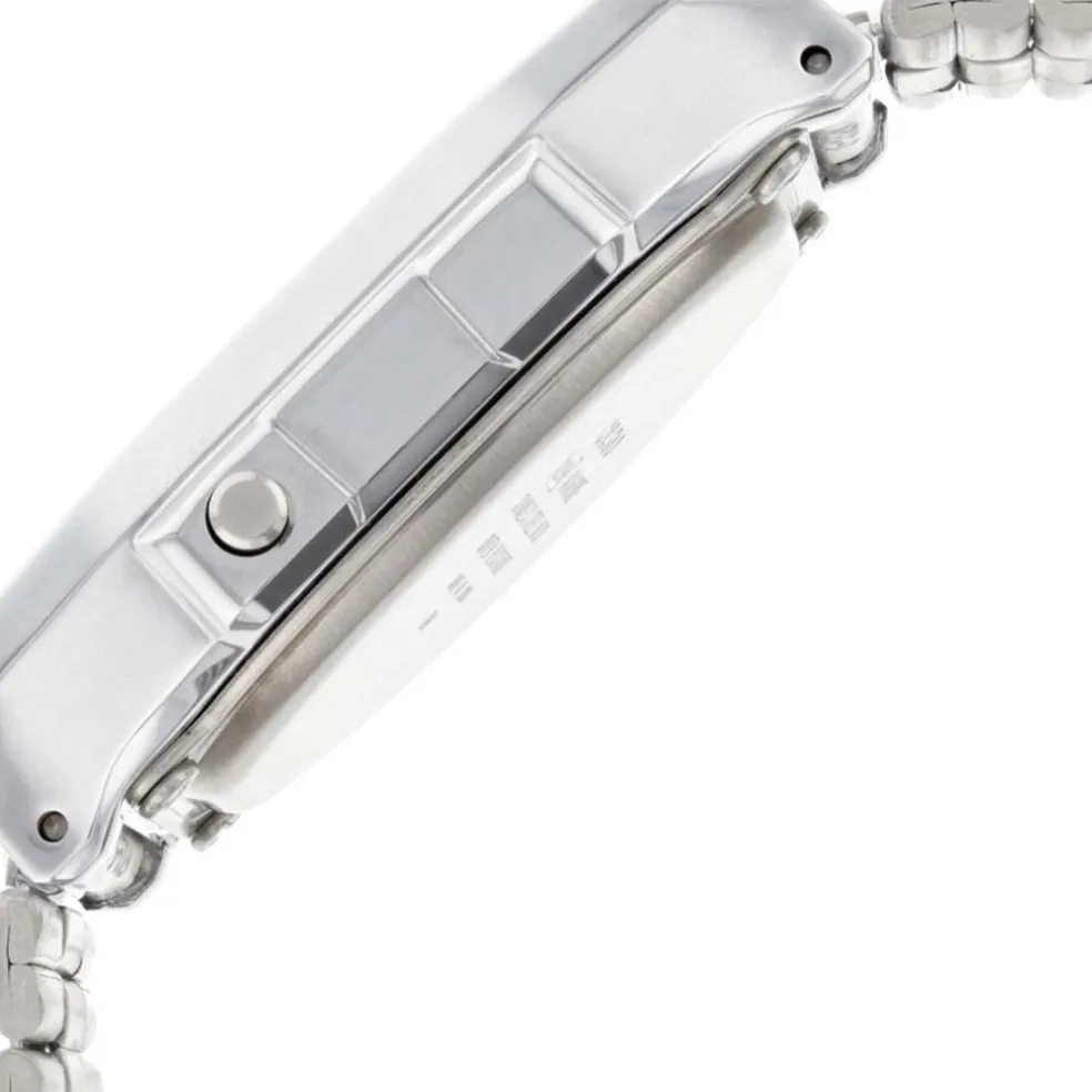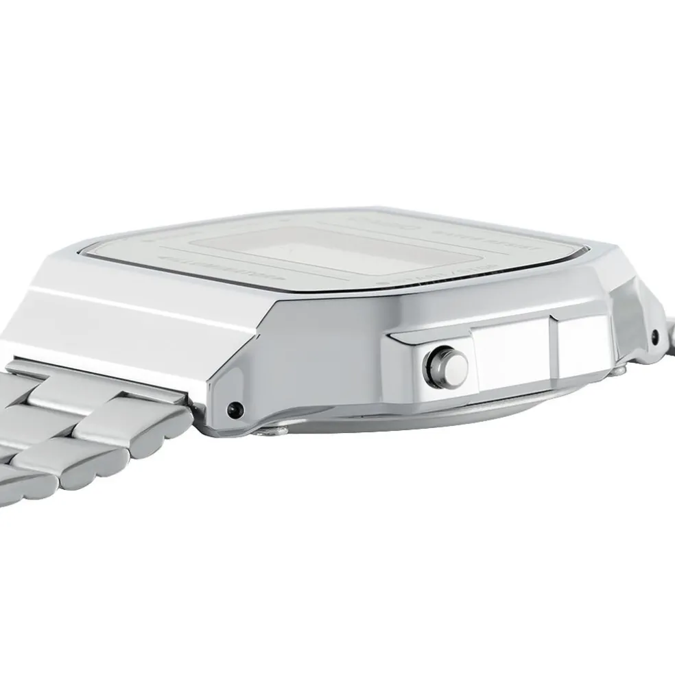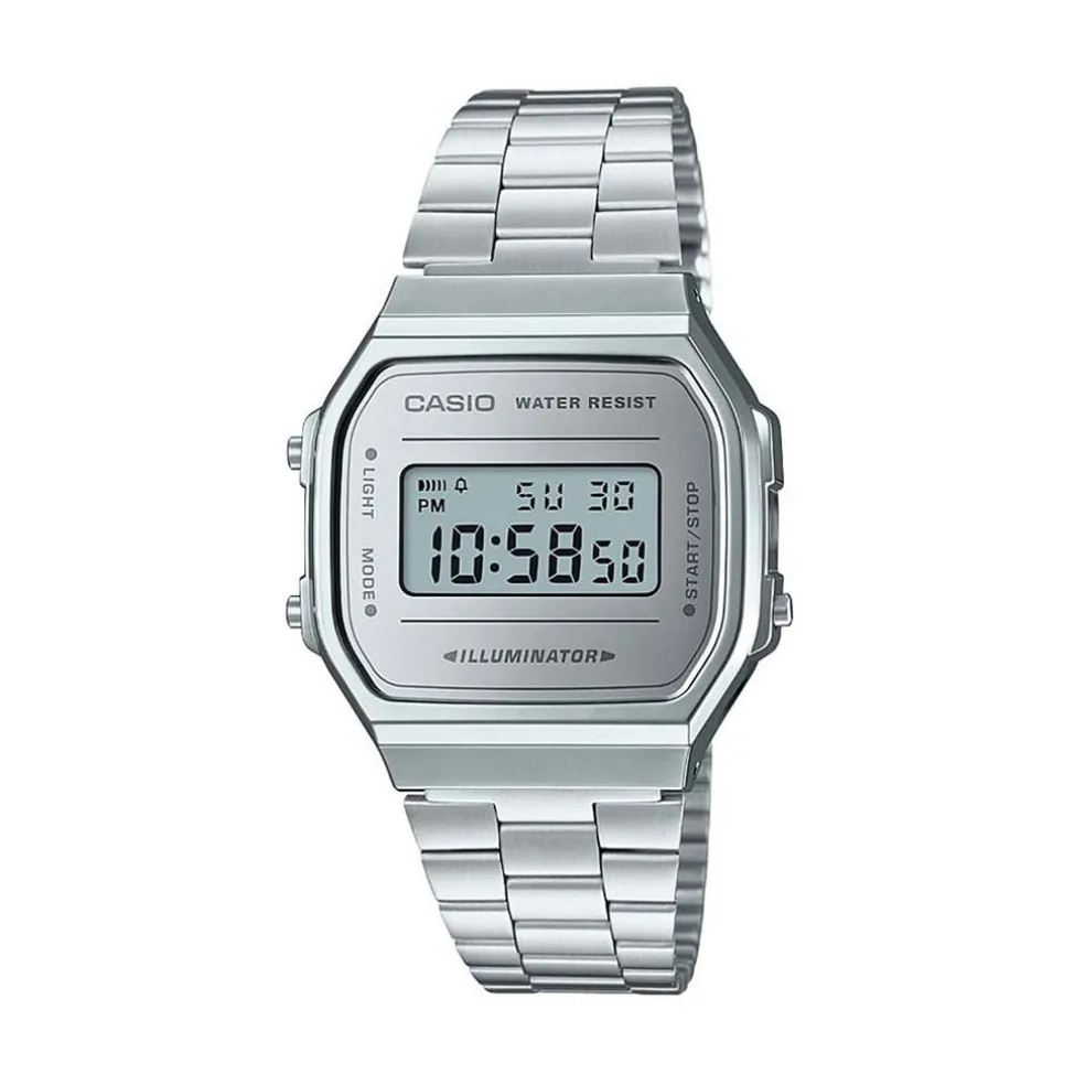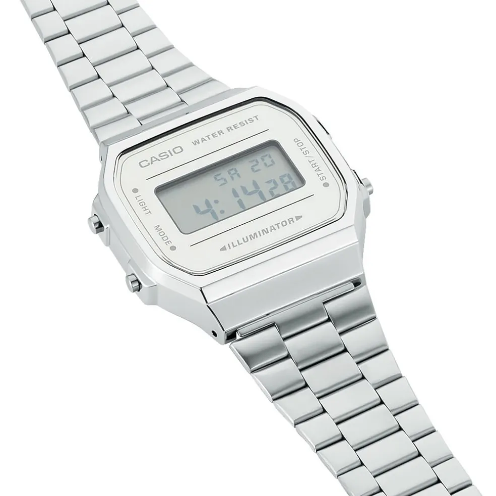 Montre Casio Collection Vintage Acier Blanc Carree Quartz 38mm Fond Argente Bracelet Acier Blanc A168wem-7ef