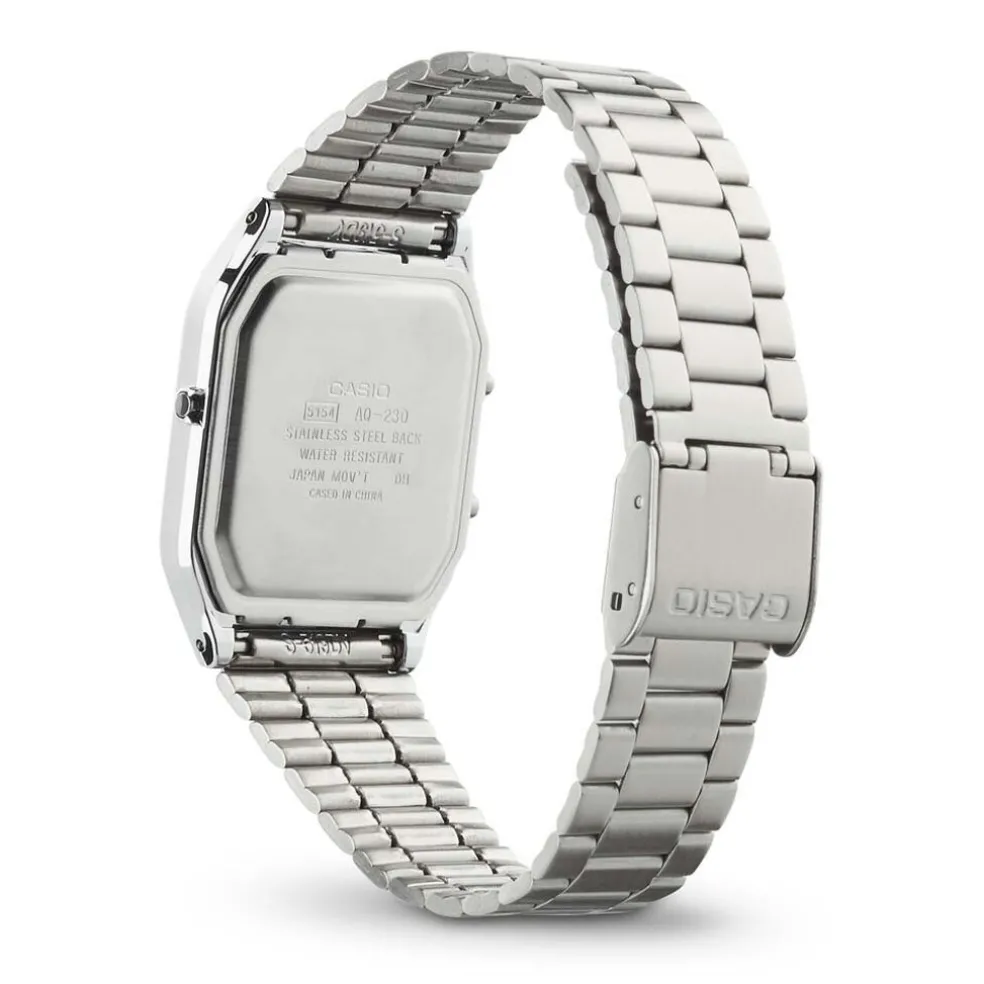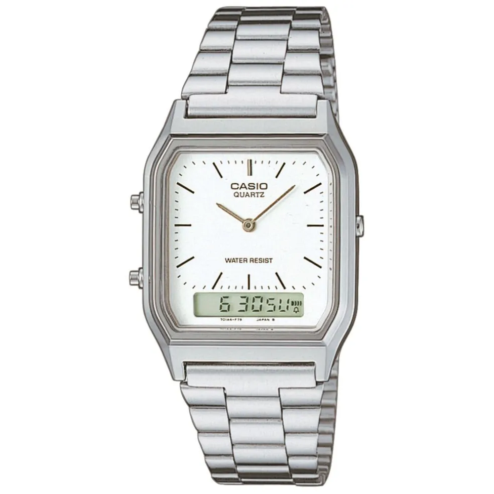 Montre Casio Collection Vintage Resine Blanc Rectangulaire Quartz 38.8mm Fond Blanc Bracelet Acier Blanc Aq-230a-7dmqyes