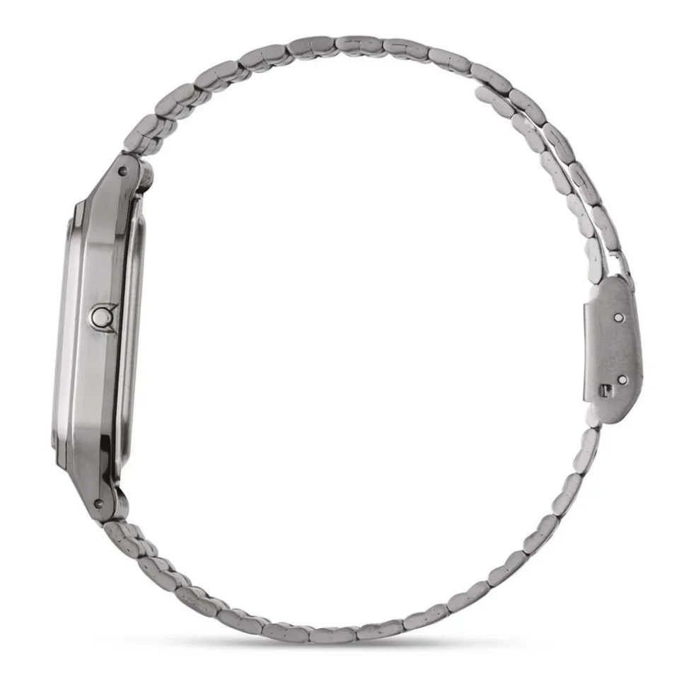 Montre Casio Collection Vintage Acier Noir Rectangulaire Quartz 38mm Fond Bleu Bracelet Acier Gris Aq-230egg-2aef
