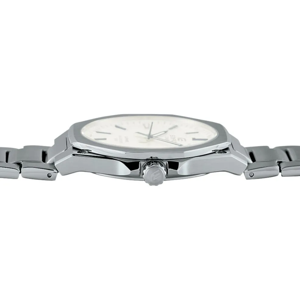 Montre Casio Edifice Acier Gris Ronde Quartz 44mm Fond Blanc Bracelet Acier Gris A100we-1aef