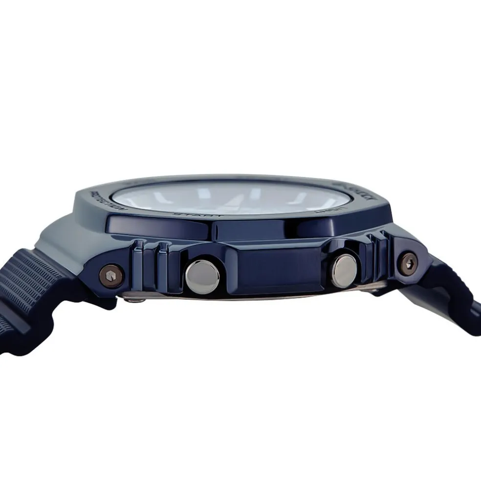 Montre Casio G-shock Acier Bleu Ronde Anadigitale 49mm Fond Bleu Bracelet Resine Bleu A100we-1aef