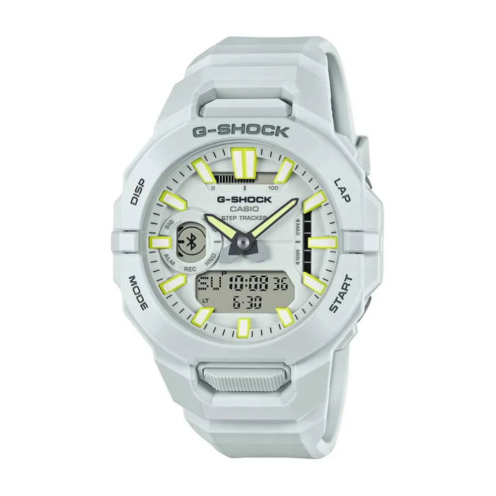 Montre Casio G-Shock Résine Blanc Quartz Anadigital Multifonction Ronde 43,9Mm Fond Blanc Index Jaune Bracelet Résine Blanc Gba-950-7Aer