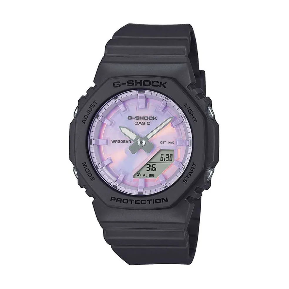 Montre Casio G-Shock Résine Noir Quartz Anadigital Multifonction Octogone 40,2Mm Fond Violet Irisé Bracelet Résine Noir Gma-P2100Pc-1Aer
