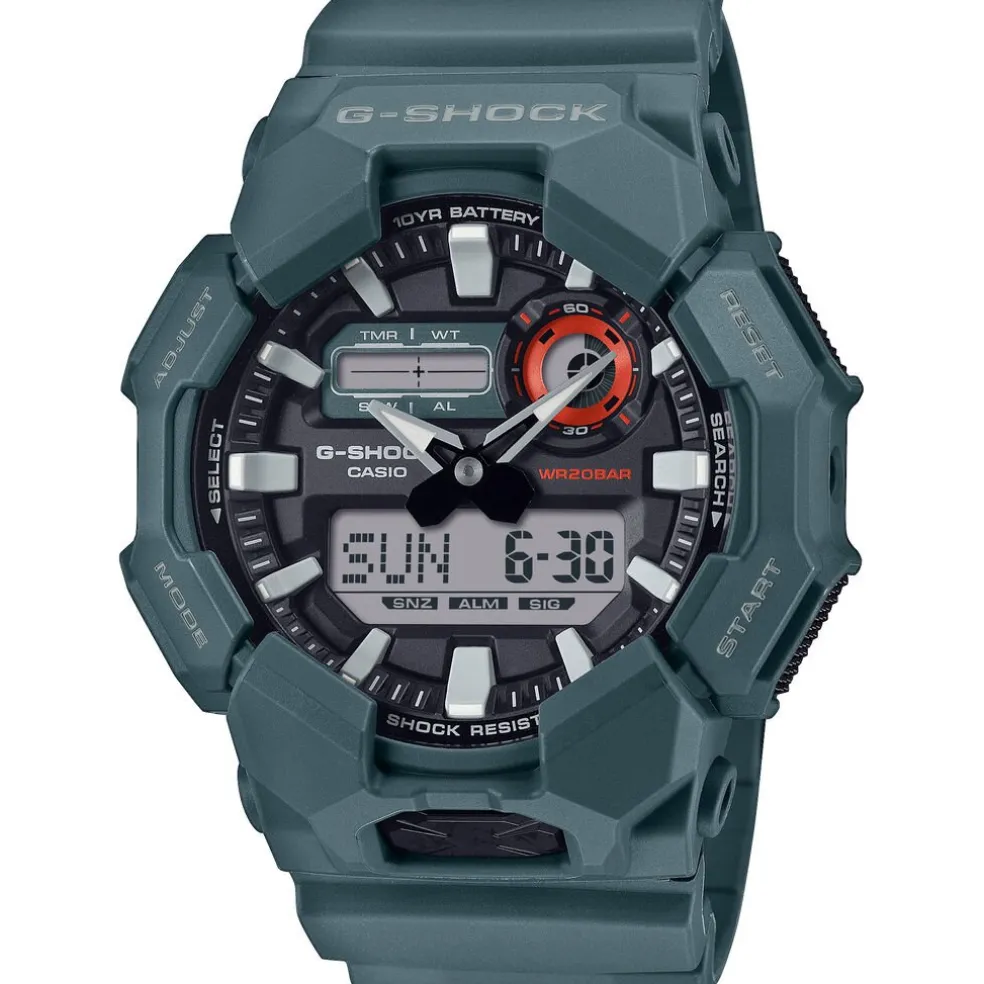 Montre Casio G-shock Résine Bleu Vert Ronde Quartz 51.9mm Fond Noir Lunette Plastique Bleu Vert Bracelet Résine Bleu Vert Ga-010-2aer