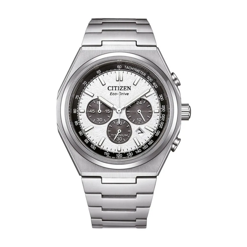 Montre Citizen Super Titanium Titane Argenté Ronde 42.5mm Quartz Solaire Chrono Fond Argenté Bracelet Titane Argenté Ca4610-85a